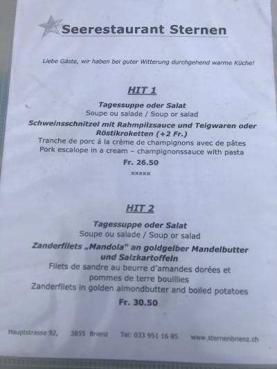 ブリエンツ湖が見える景色の良いテラス席のレストランは他にもあるので、どこか一軒だけ行くのであれば、オススメはできません- 旅行時期