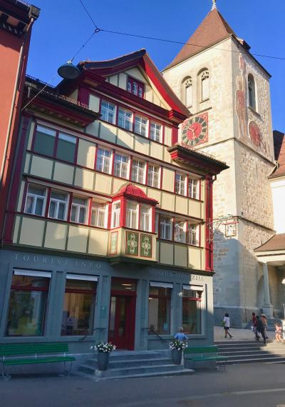 駅からはそれほど遠くはないですが、最後は小高い丘にかなり登るので足腰の悪い人にはオススメできませんが、アッペンツェルの街並みと周囲の山々の風景は抜群です。