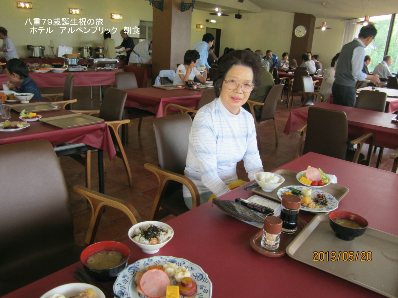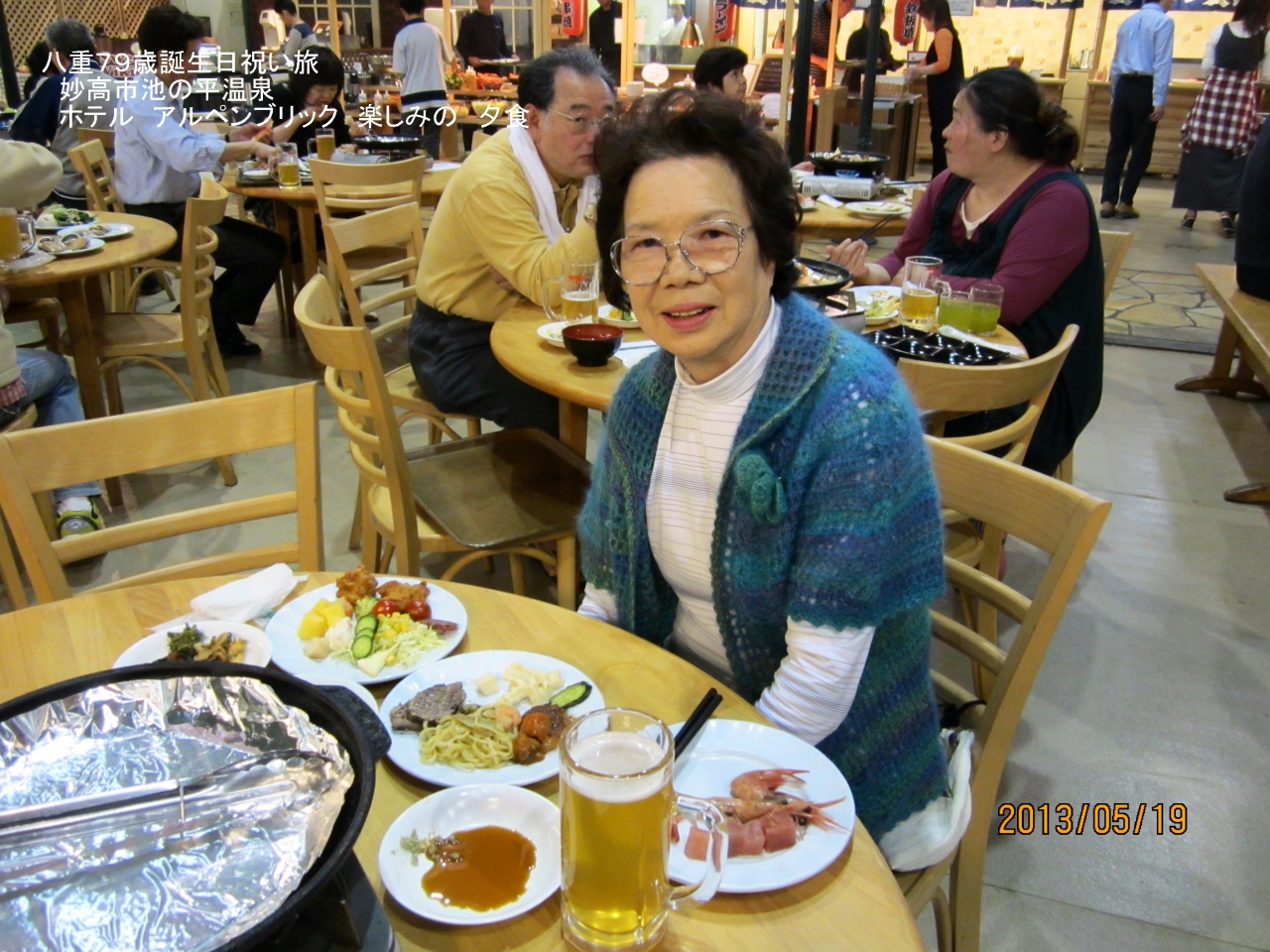 夕食は、ビール工場付属のアルペンブリックガーデンでのバイキングで、地元山菜・新鮮な海の幸豊富な料理の数々、天ぷら・寿司・焼肉店もあり、90分ビールなど飲み放題、美味しく、楽しいひと時を、また、朝食も美味しくいただき満足しました。