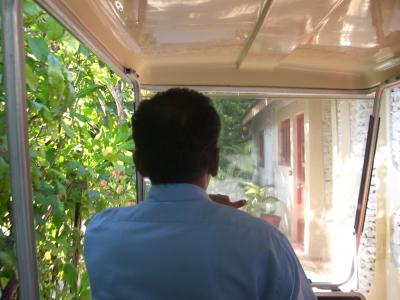 私たちが泊まる水上コテージまで島内を走るカーで連れて行ってもらいました...