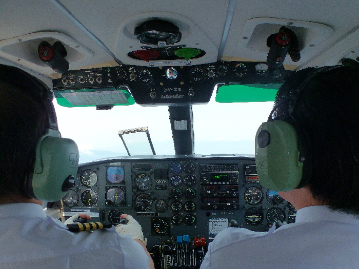 このセスナのような飛行機にはじめて乗ったが臨場感はすごい。目の前のパイロットの操縦が手にとるように分かる。しばらく佐渡の島沿いを飛ぶから