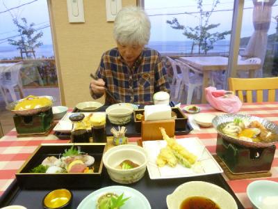 でまかせ定食は、地の刺し身や、地元の料理が何点か。ここでもうまかったのは、海藻の煮もの。そしてやはり海藻のみそ汁。