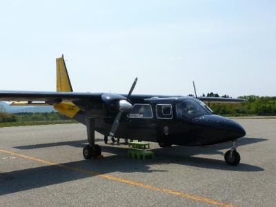 新潟空港から佐渡空港まで、去年からセスナのような飛行機が1日4便も就航している。8人乗りで1カ月前からの予約制。値段は普通片道6500円だが、準市民登録をするとなんと4500円になる。(もちろん島民もこの値段。)