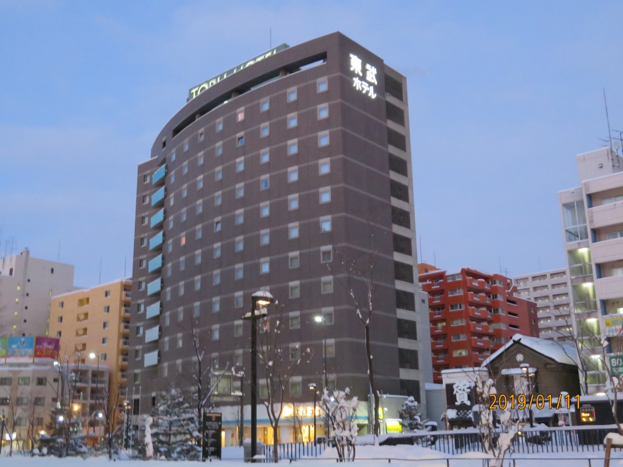 すすきのにあり、食事や観光に出かけるのに立地は申し分ない。部屋からも札幌の街並みが見えて旅の気分がわく。やや狭くて暗いのが惜しい。