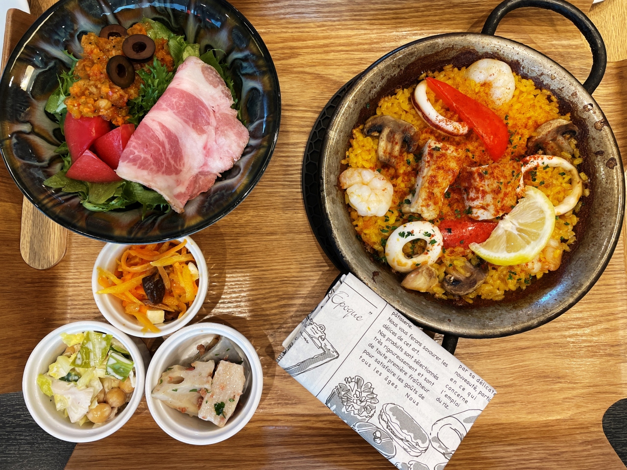 家内は「ミックスパエリア」(1,930円)。鶏肉・海老・イカ・キノコなど具沢山の正統派ミックスパエリアで、熱々の出来立てが鍋ごと登場。調味料の味ではない、具材や出汁の味わいが実に豊かでした。サラダのドレッシングもやや変わったビジュアルでしたが、クセがなくいただきやすいものでした。- 旅行時期
