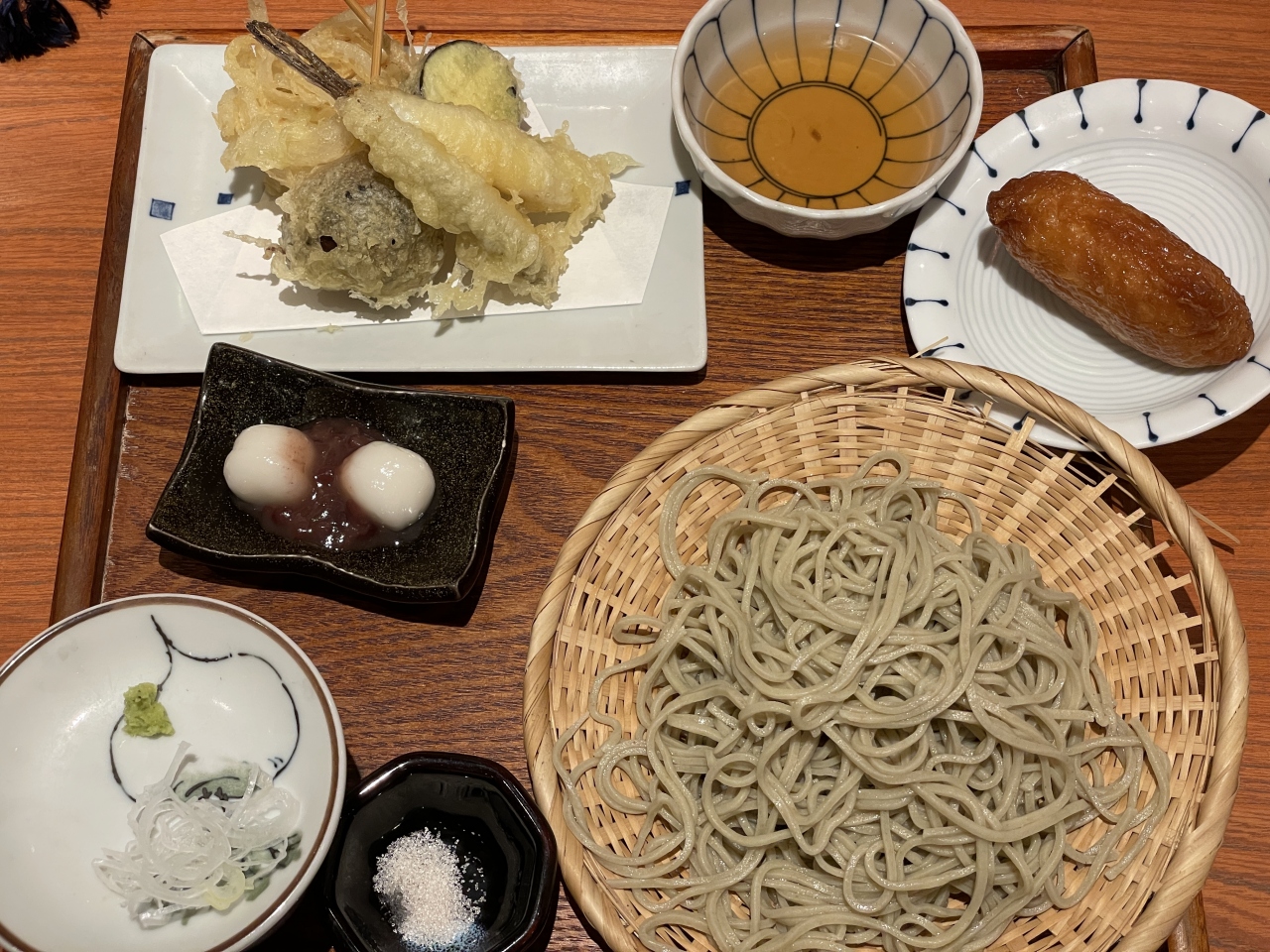 何といっても蕎麦そのものが素晴らしい。今日の十割蕎麦は群馬産とのことですが、素晴らしい味わいと歯ごたえに大満足でした。そばつゆはもう少し甘めが好みですが、とろ~っとした蕎麦湯には合いました。天ぷらも本格的にメゴチが登場してちょっとびっくり! デザートの白玉もうれしい。ひとくちいなりを足すのもオススメですよ。- 旅行時期