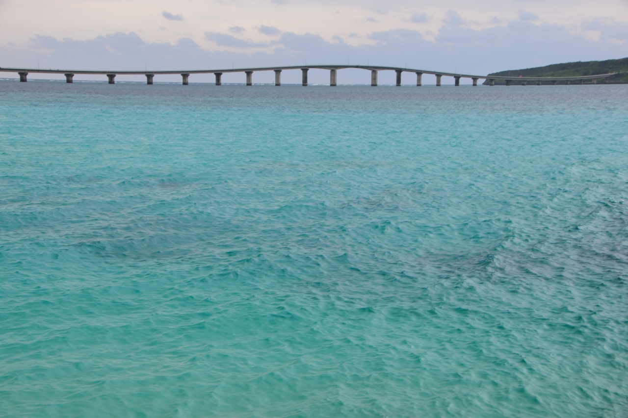 無料橋として日本最長の伊良部大橋はレンタカーでも渡りましたが、実は海の手前の欄干が視線を遮ります。その点バスは何といっても目線の位置が乗用車よりもかなり高いので、爽快なエメラルドブルーの海を満喫できます。空港やホテルだけでなく市内の要所に停車してくれるのも有り難い快適な交通機関でした。