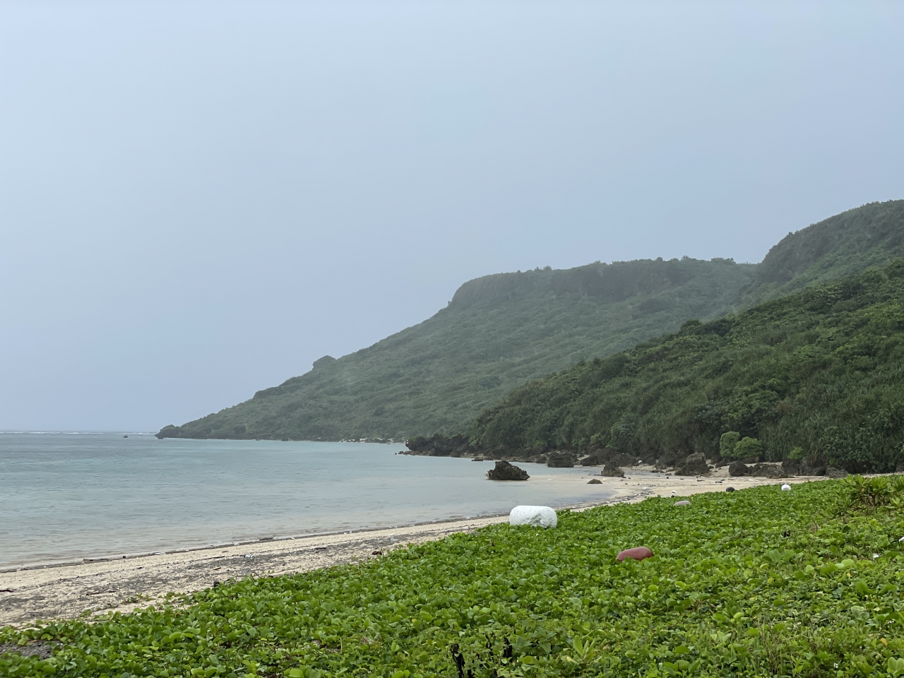 脇から真っ直ぐにのびる来間大橋も絶景を構成する要素ですが、海の色、水の透明度、そして何と言っても目映いほど白い砂! 宮古島随一の景勝ビーチと言われるだけのことはありますし、老舗の東急リゾートがこの隣接地に目をつけたのもうなづけます。家にあった古い観光ガイドブックでは「よなはめーはま」とルビがふってありました。