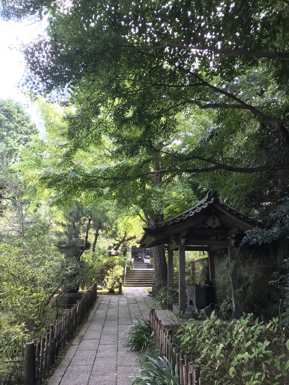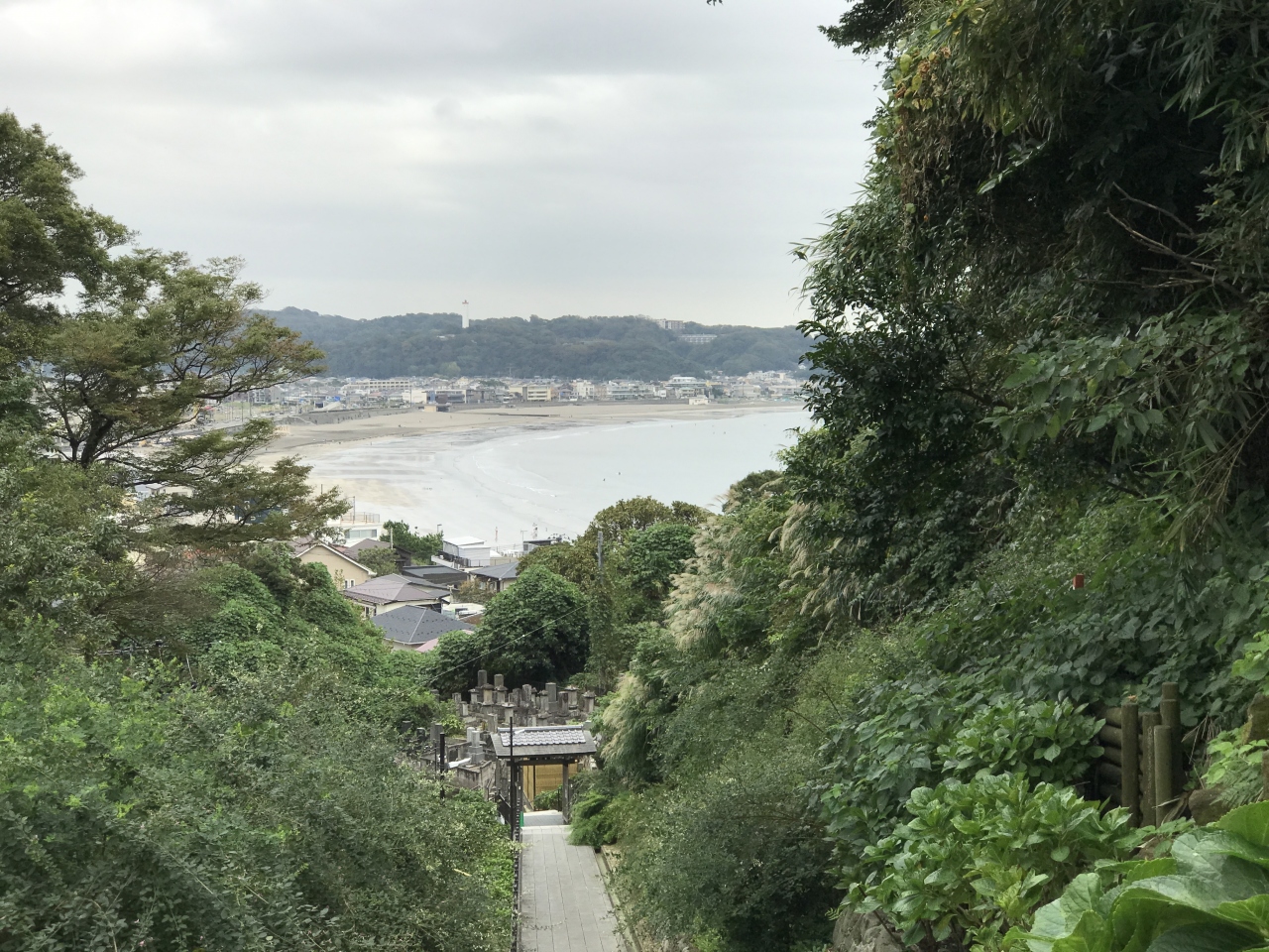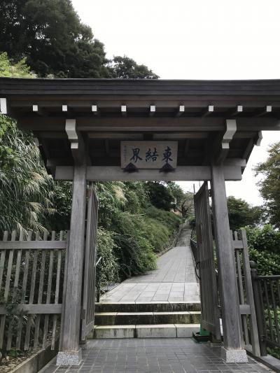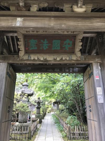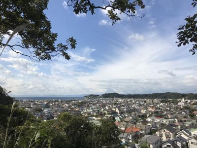 「安國法窟」と記された額が掛けられた山門から一歩中に入ると、木々の美しい参道に眼を奪われます。紅葉は間違いなく美事でしょうが、その時期でなくとも美しい緑に癒やされます。左にある札所で御朱印帳を預けておけば、境内の散策後にいただけます。その先の本堂は落ち着いた趣です。近くにはインドかタイを思わせる初転法輪像とともに仏足石もありました。本堂と向かい合う熊王殿の右脇から、富士見台に登れる階段がありました。1段1段が高めで斜度がかなりありますので、十分注意しながら登りましょう。距離はさほどありませんが休み休み登りきると、鎌倉市街や由比ヶ浜を見下ろす絶景が眼に飛び込んできます。雲が多くあいにく富士山は望めませんでしたが、感動する風景であることは間違いありません。- 旅行時期