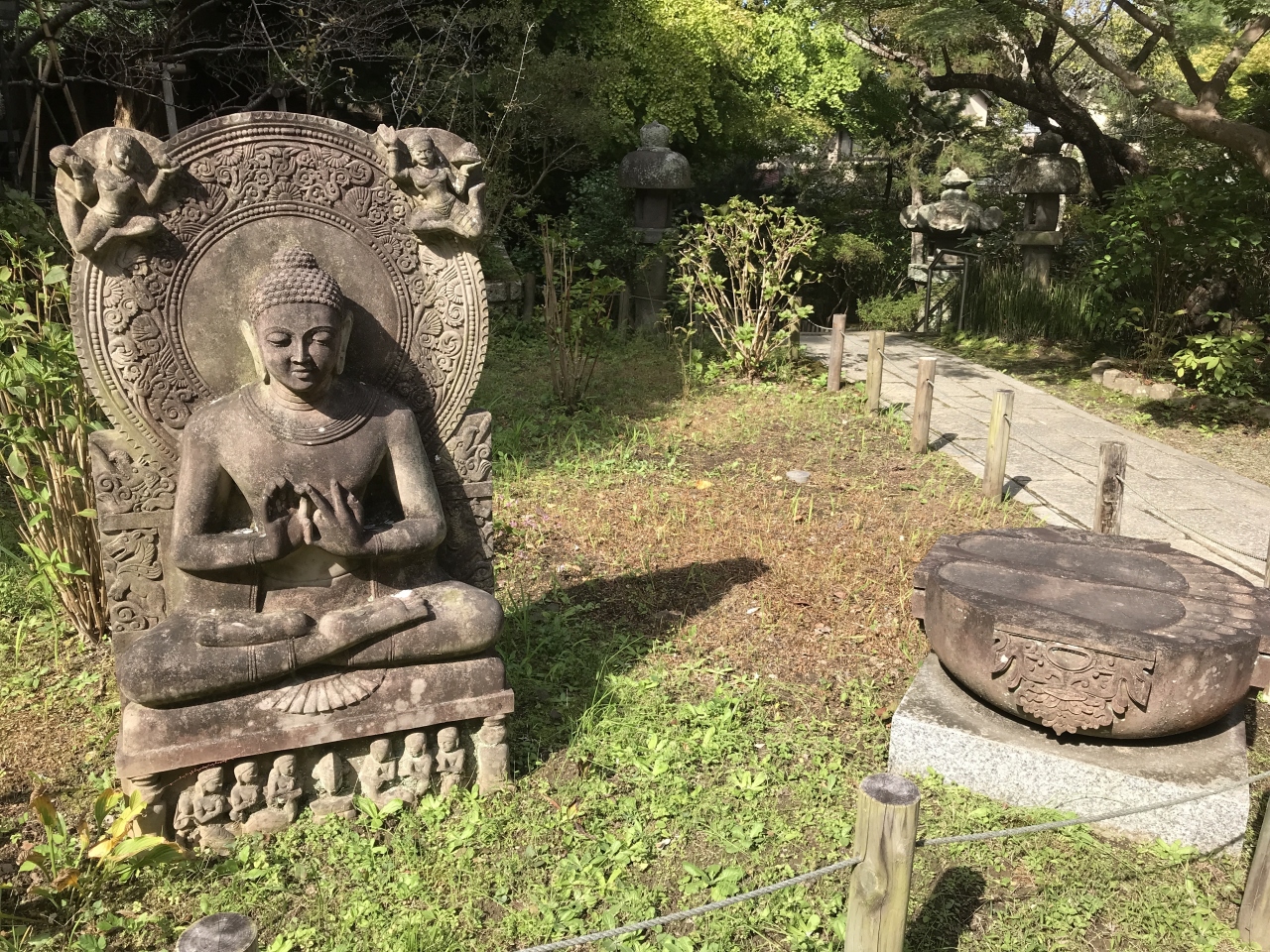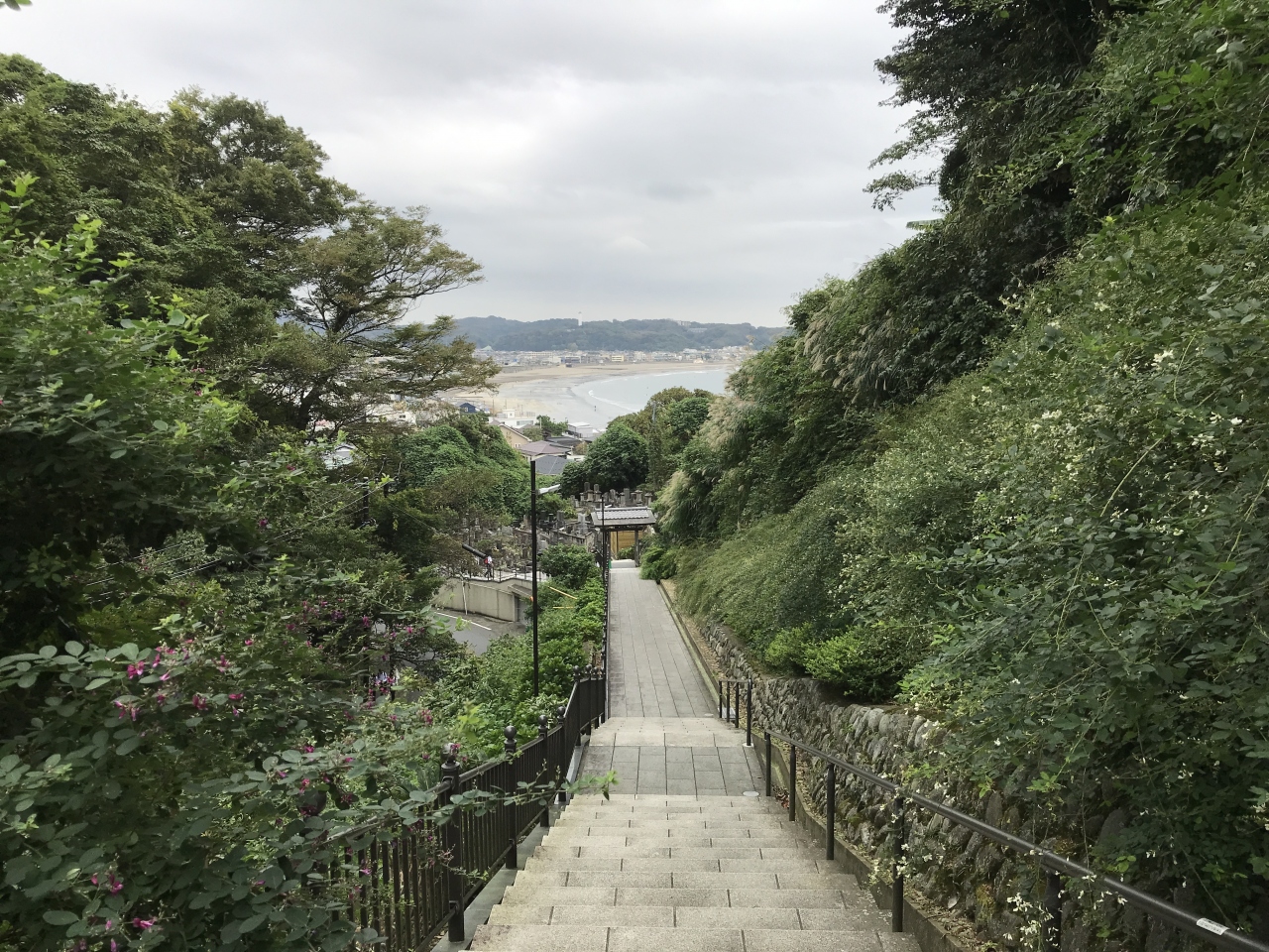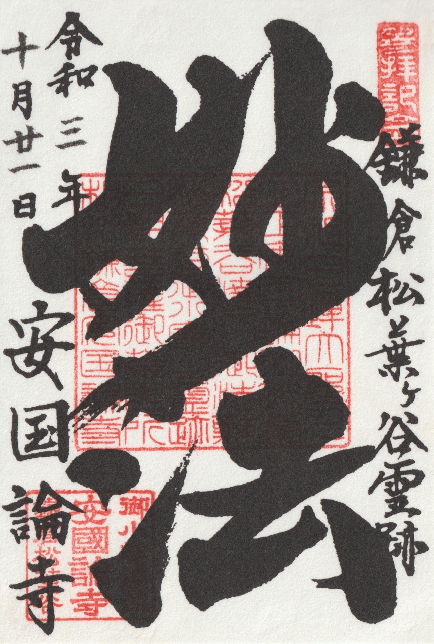 「安國法窟」と記された額が掛けられた山門から一歩中に入ると、木々の美しい参道に眼を奪われます。紅葉は間違いなく美事でしょうが、その時期でなくとも美しい緑に癒やされます。左にある札所で御朱印帳を預けておけば、境内の散策後にいただけます。その先の本堂は落ち着いた趣です。近くにはインドかタイを思わせる初転法輪像とともに仏足石もありました。本堂と向かい合う熊王殿の右脇から、富士見台に登れる階段がありました。1段1段が高めで斜度がかなりありますので、十分注意しながら登りましょう。距離はさほどありませんが休み休み登りきると、鎌倉市街や由比ヶ浜を見下ろす絶景が眼に飛び込んできます。雲が多くあいにく富士山は望めませんでしたが、感動する風景であることは間違いありません。- 旅行時期