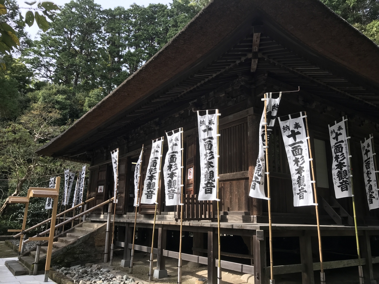 天平時代に東国の旅をしていた行基さんが、ここが観音様を祀る場所にふさわしいと考え、自ら彫った十一面観音を安置したということです。私は奈良に暮らしていたので、近鉄奈良駅前の行基像は親しみがあります。時代は違いますが弘法大師と並んで全国何処にでも現れている行基さん、すごいです。参道を登って拝観料を支払うと、山門の先に有名な苔の階段が目に飛び込んできます。鮮やかすぎず微妙な色合いを見せてくれているところに歴史を感じます。その階段は登ることが禁止ですので、左に迂回する階段を登りますが、さほどキツくはありません。観音堂である本堂は屋根が茅葺きという古刹の佇まいです。堂内正面に十一面観音が立っていらっしゃいますが、運慶作で源頼朝が寄進したと伝えられるこの観音像は実は御前立といってご本尊ではないそうです! 本尊として祀られている三体の観音像は秘仏であり、毎月1日と18日にだけ拝観できるとのこと。観音堂右手には地蔵尊が、奥に進むと白山・熊野両権現尊を祀る権現堂があります。御朱印は本堂内寺務所でいただけます。- 旅行時期