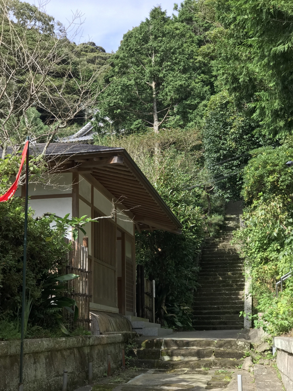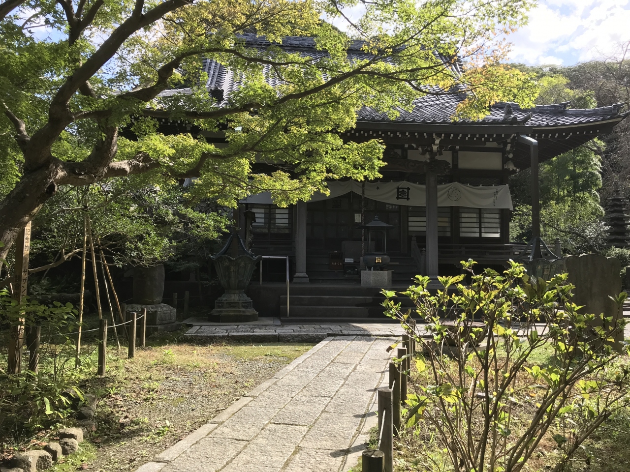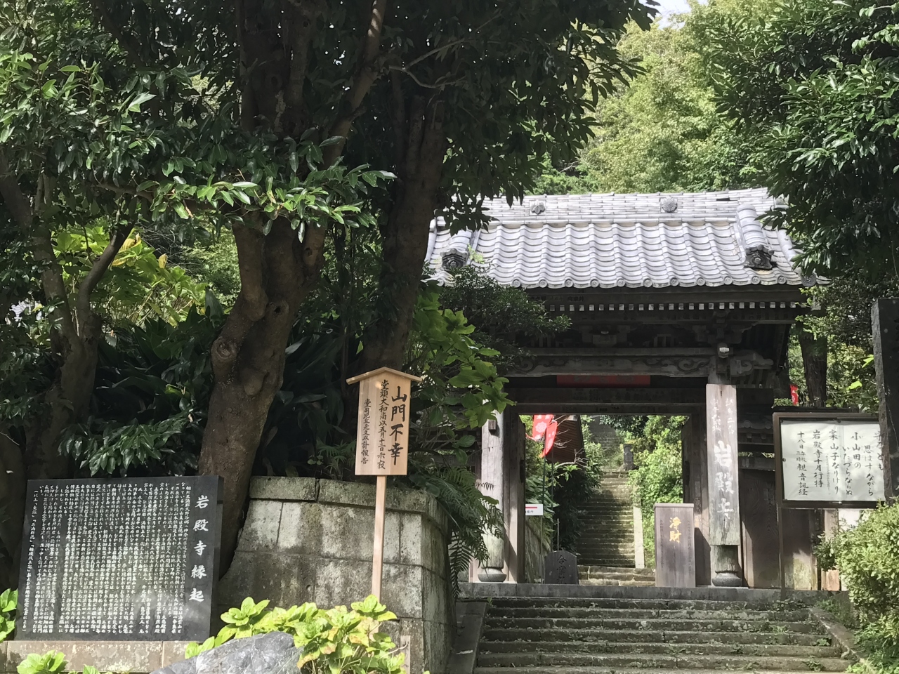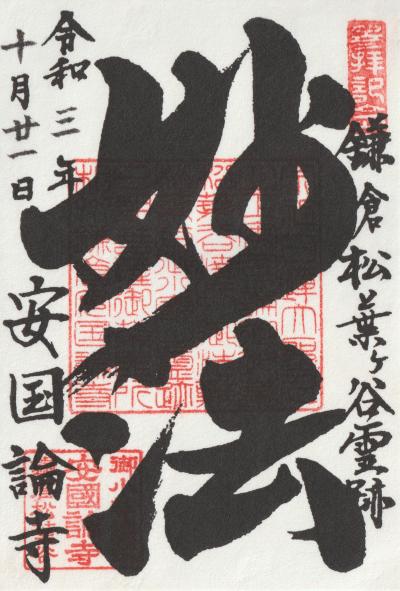 昔、徳道上人というお方が一本の楠の霊木から二体の観音像を造り、一体を奈良大和の長谷寺にお祀りし、もう一体は縁のある土地を求めて721年に海に流したそうです。霊像は海を漂い、ついに相模の地に流れ着いた・・・。まさにその観音様がこのお寺の御本尊とのことです。ゆえに今年は造立1,300年ということになるわけです。ということで、観音像の大きな足先に直接手を触れてお参り出来る「御足参り」を、観音会の日以外の日でも実施してくれていました。感染症対策として手拭い越しに触れたのですが、大きなお御足の温もりのある木肌を通じて観音様のやさしさに直接接することが出来た気がしました。此処は坂東三十三観音第四番札所でもあります。