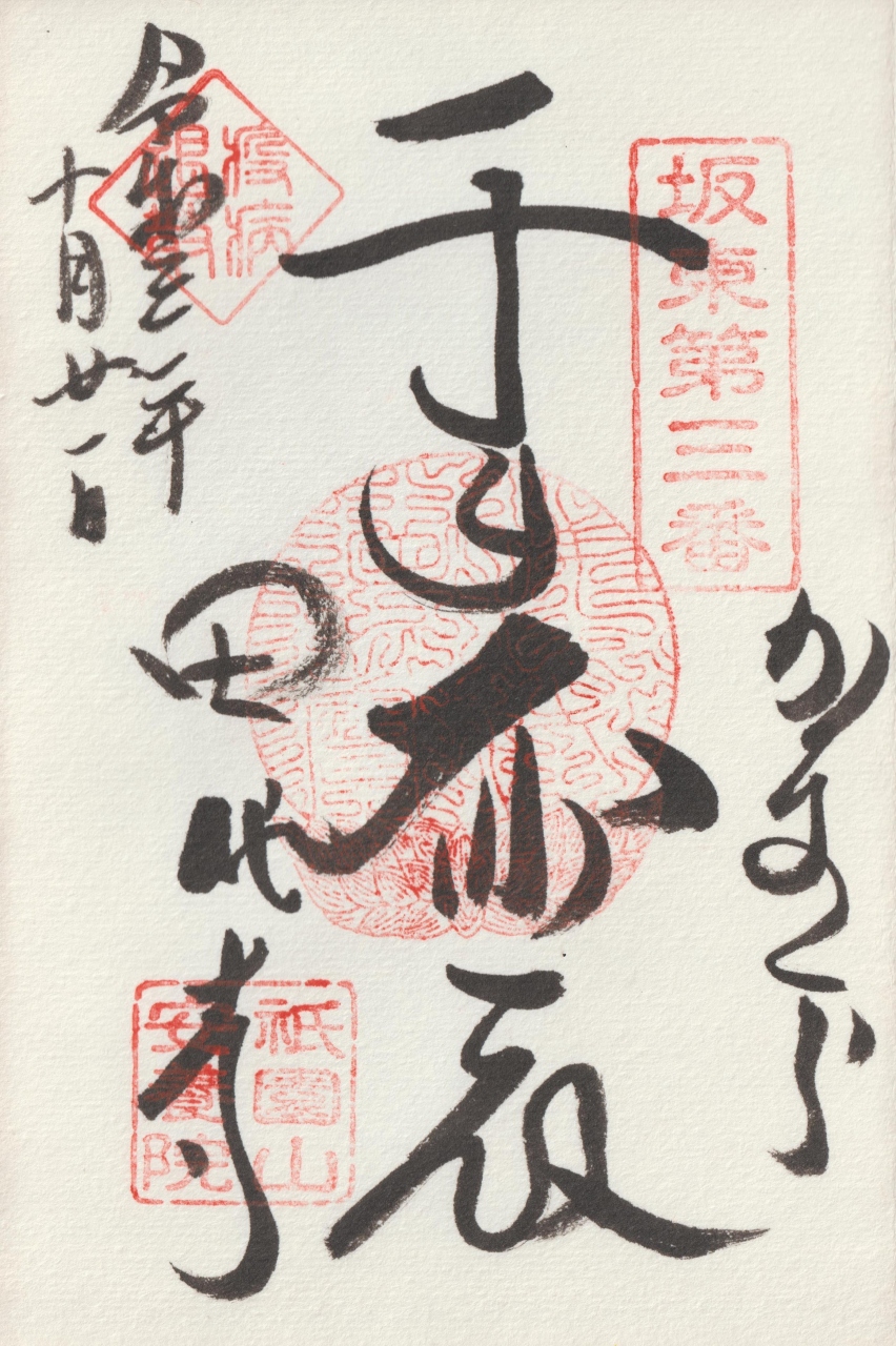 坂東三十三観音第二番札所の御朱印は、石段の登り口の脇にある納経所でいただけます。- 旅行時期