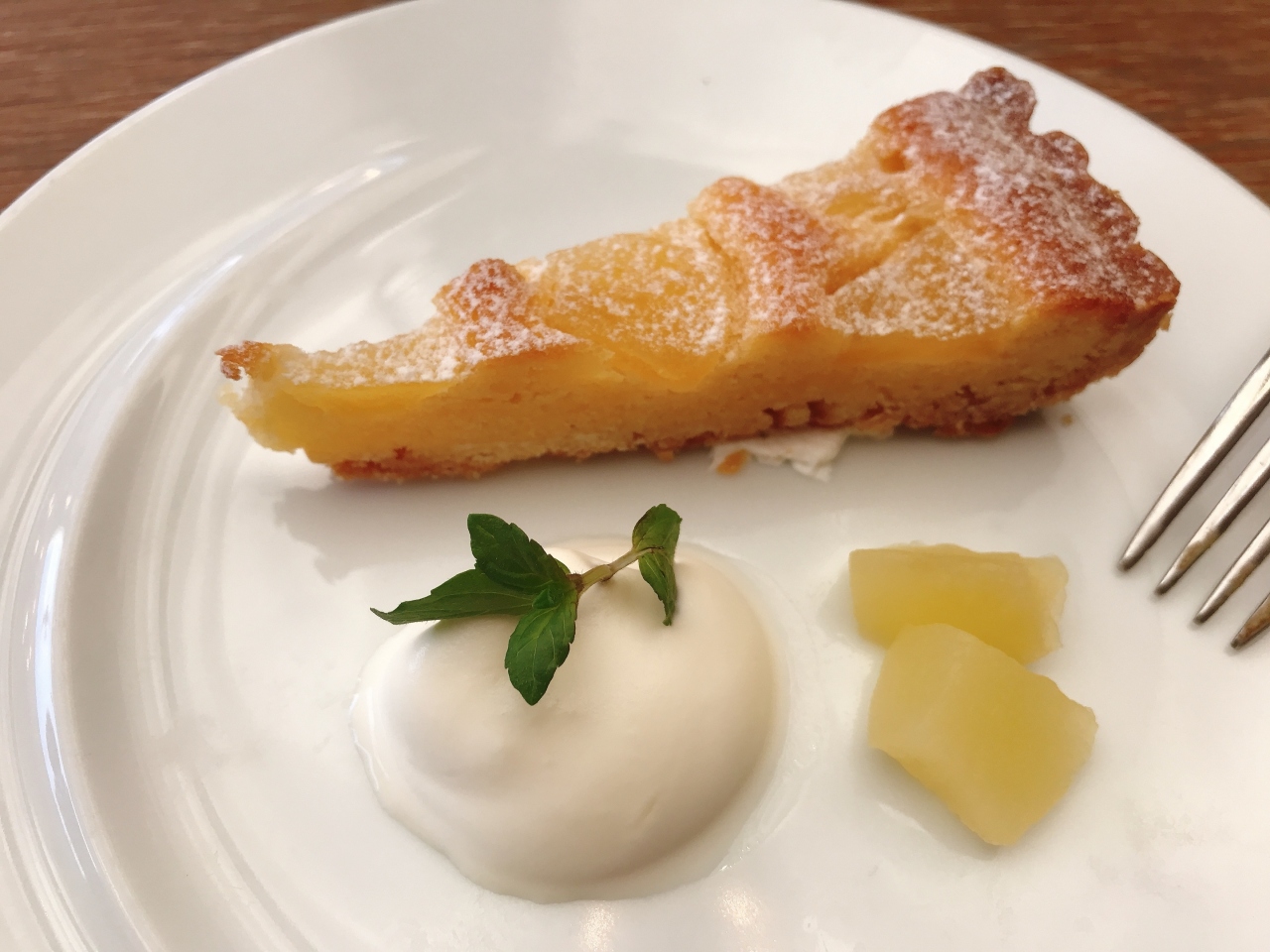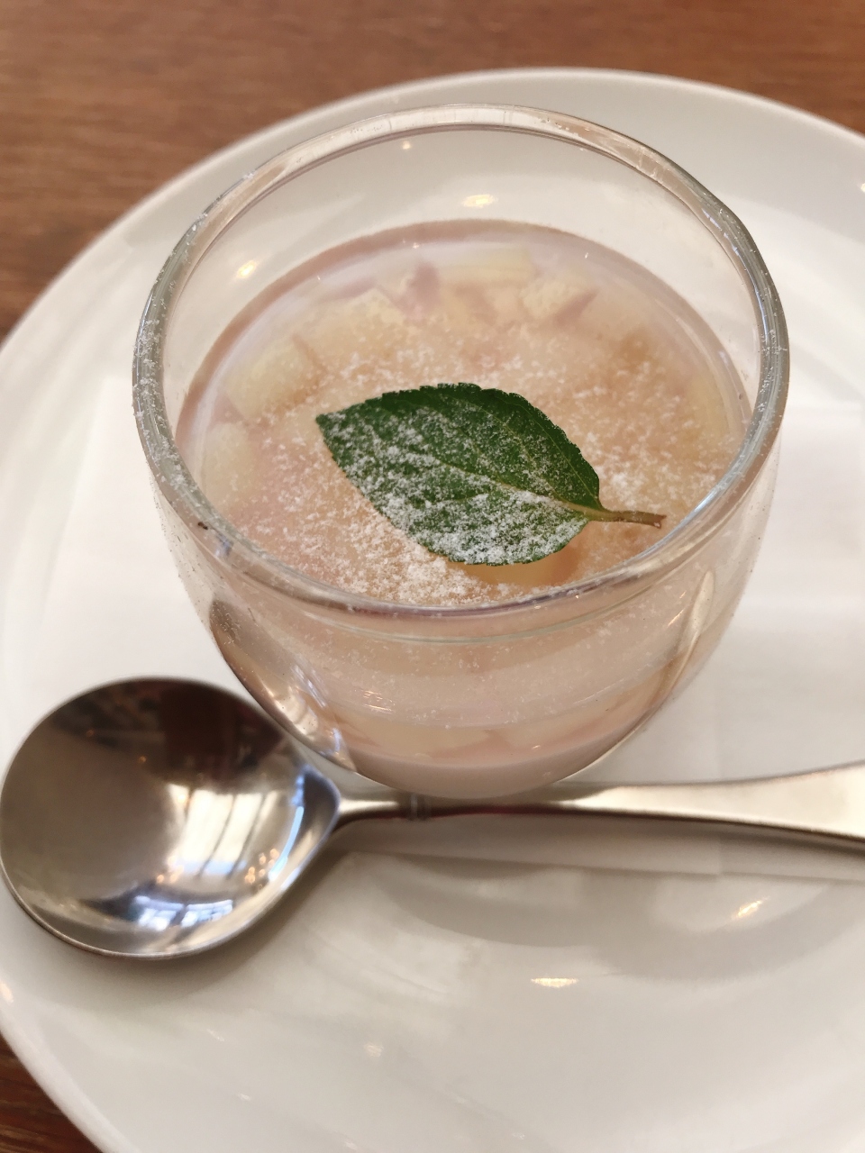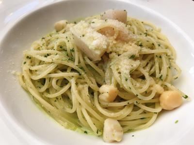料理はランチセットのBを注文しました。前菜盛り合わせは、タイプの違う3種で、なかなか面白かったです。ムール貝のアーリオオーリオがイタリアンらしいものでしたが、コハダも爽やかでした。ピッツァはカラマリをチョイスしたのですが、出て来た時の大きさにはちょっとびっくり。熱々で美味しかったです。パスタは小柱のクレソンソースというちょっと珍しいメニューを注文したのですが、これが大当たり。よくあるバジルとは違うクレソンの若干の苦味がクリームと融合して、見事な味わいでした。ドルチェは桃のパンナコッタと林檎のタルトを選びましたが、たっぷりあって満足しました。ドリンクは私がジンジャーエール、家内はホットミルクティーを頼みました。ドルチェがあるので、甘すぎないとはいえジンジャーエールよりはアイスコーヒーあたりの方が良かったかも知れません。