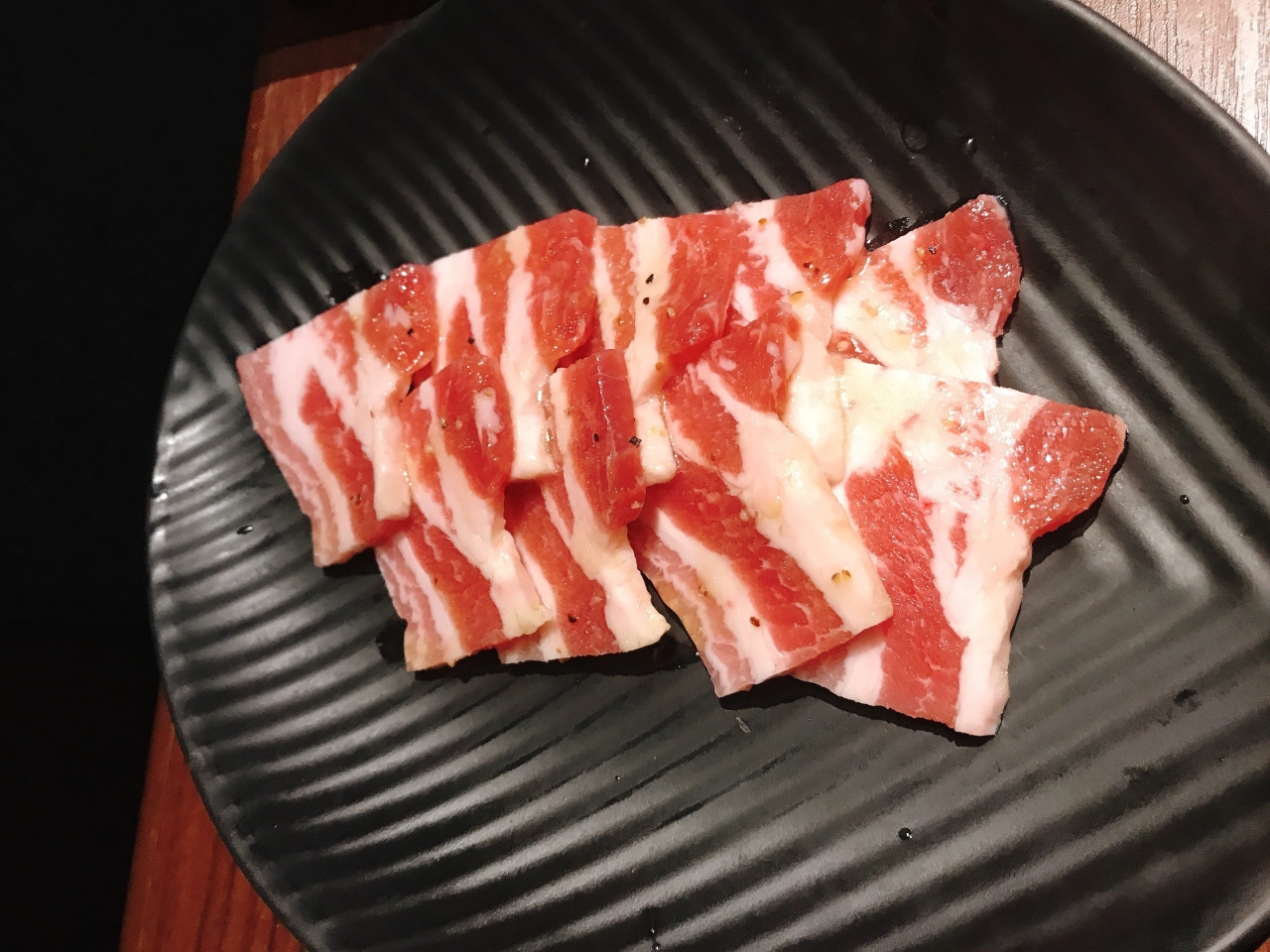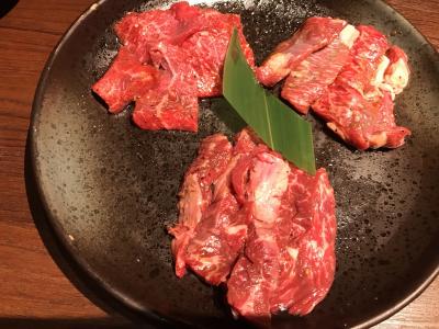 南から行く際には静清バイパスの側道でUターンして店の駐車場に入ります。店舗のエントランスには高級感があり、予約しておいた席も個室のようになっていてそれはとても良かったのですが、一皿のお値段が高めなので、タン塩以外は「上」でなく普通のカルビ・ロース・ハラミ・豚カルビを頼みました。結果として失敗。この店はお値段が張っても「上」シリーズでないと満足いく質でないのかも知れません。追加した「希少部位切り落とし」がとても旨かったので、余計に残念な思いでした・・・。