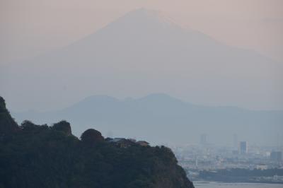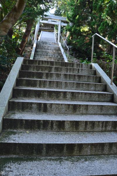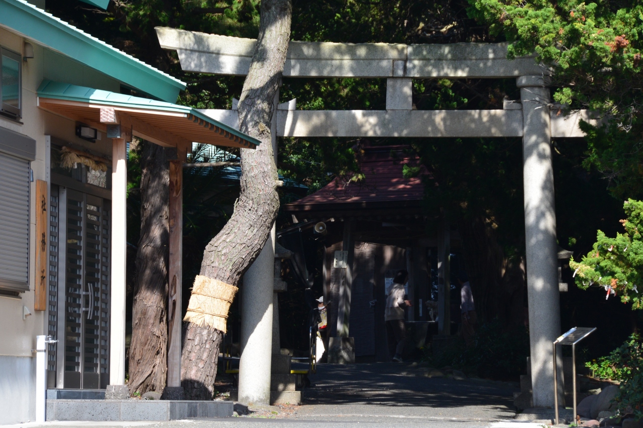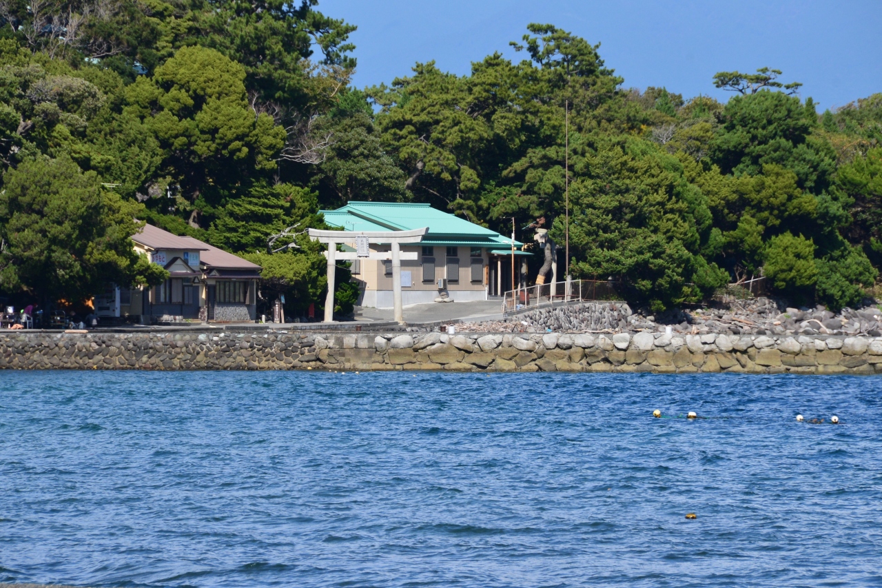 やや急な石段の上にある大瀬神社にもきちんとお参りを。社殿に向かって右後ろに下る道を行くと海に出ます。富士山が望めます。