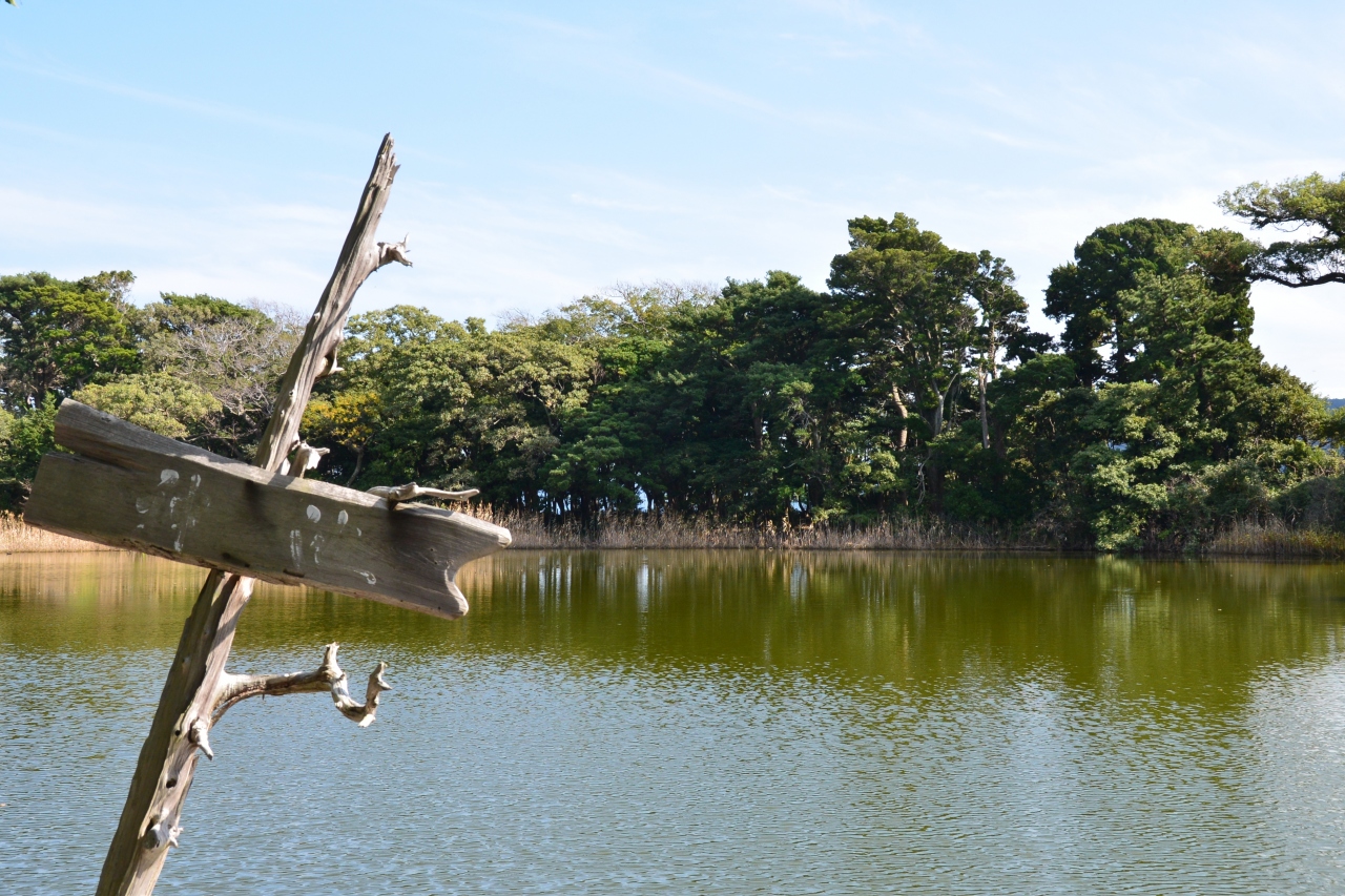 周りを囲む木々のすぐ向こうは海なのに、砂洲で出来たと思われる岬の先端にポッカリとある池は、やはり不思議です。ただ、池そのものは期待した美しさはありません。