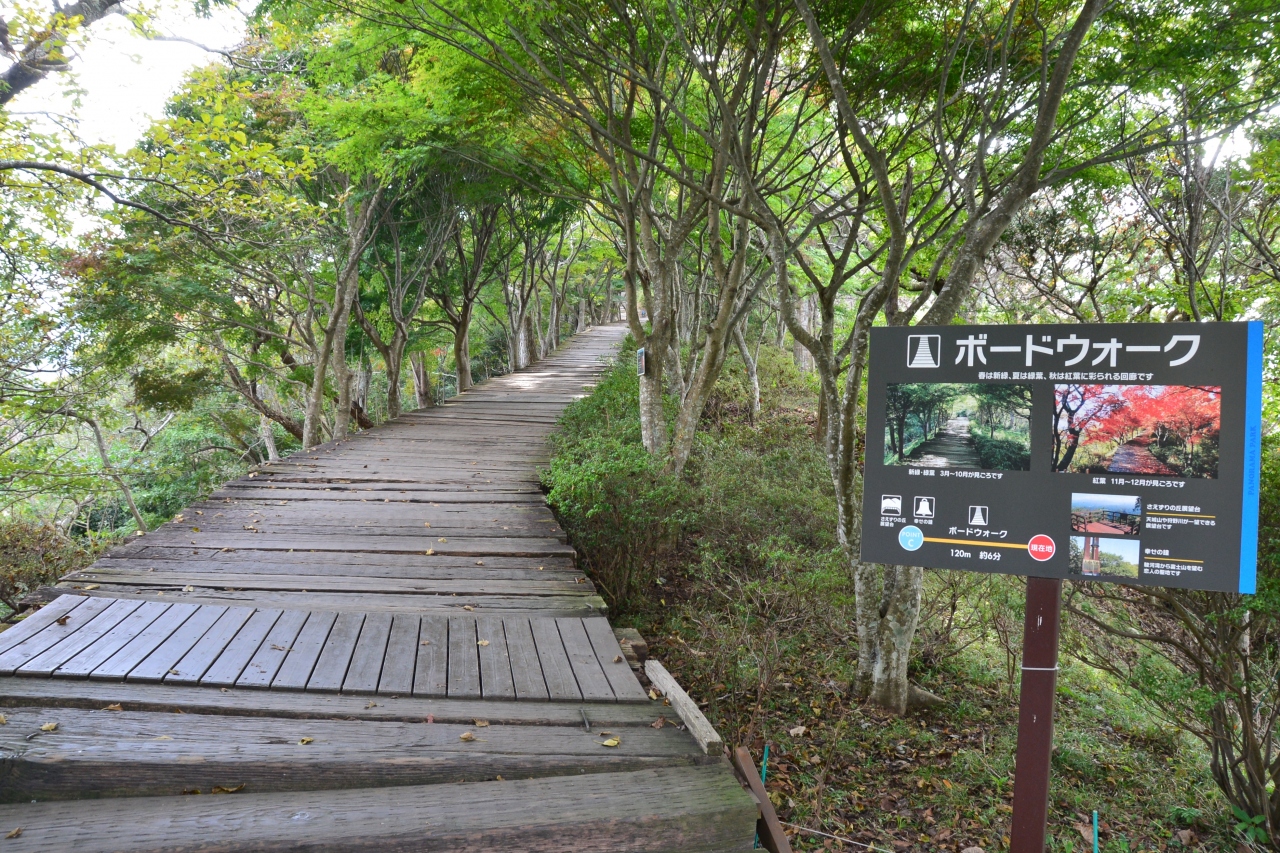 山頂駅で降りたら葛城山山頂展望台で戻らず、そのままさえずりの丘展望台まで足を伸ばしましょう。途中にはボードウォークなどもあって、紅葉も美しいエリアです。