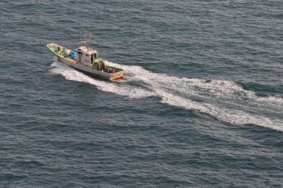 チェックインを済ませて客室へ向かうシースルーエレベータからは、焼津の美しい街明かりが眺められ、夜が明けてからは8階の部屋から見渡せる駿河湾と漁船の美しい航跡も素晴らしいものでした。もちろん大浴場に併設の露天風呂からの富士は文句無し!! 朝風呂にあんなにのんびり浸かったのは初めてかも知れません。それほど見飽きませんでした。