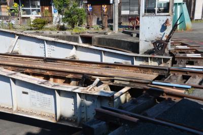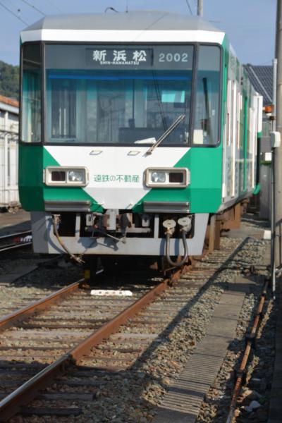 下り線ホームに入線した掛川方面からの列車に11時半に乗車。駅構内を上り方向へ走り始めました・・・が、一時停止。運転士さんが逆方向の運転台へ走って行ったかと思うとまたもや下り方向へ動き始めました。車庫へとつながるレールの方へ分岐を渡って行きます。プチ興奮の瞬間です。