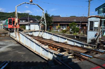 続いて、乗車した車両ごと転車台の上へと移動します。思ったより静かでスムースです。さらに我々を乗せた車両は転車台により回転!! 向きを変えるだけなら180度で良さそうなものですが、いつもより余計に回しております!360度。なかなか体験できない視界の変化でした。