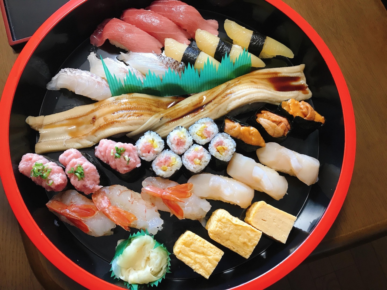 持ち帰ってすぐにスパークリングワインなどとともにいただきましたが、眼を惹くふっくら仕上げた一本穴子だけでなくどのネタも美味しく、生本まぐろの「中とろ」は大とろに近い味わいでしたし、上質にこだわったという「うに」も嫌味が無くスッキリしていました。肉厚な「ほたて」と大ぶりな「生赤海老」も良いネタを使っていました。「玉子」も寿司屋らしい味でした。「とろたく」が入っているのも珍しいですね。- 旅行時期