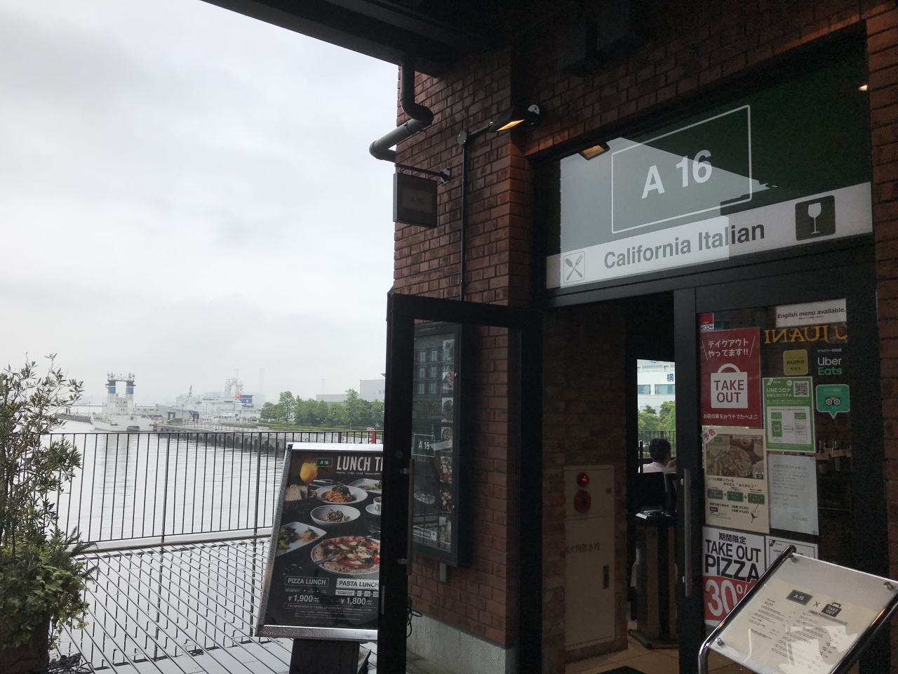 事前にネット予約をしておきました。テラス席を選んでおいたのですが、入店時に「雨模様なので店内のテーブル席の方も押さえてあります」と言われました。なんと親切な!と驚きました。テラス席からは新港埠頭客船ターミナルがすぐ目の前に見えます。