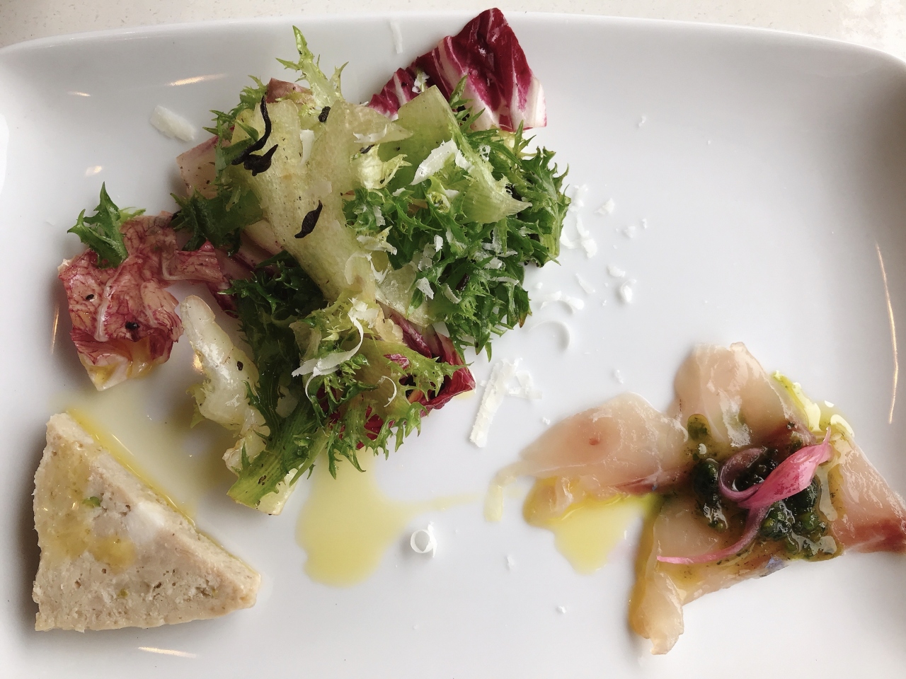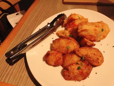 オードブルは、盛合わせも魅力でしたが、マッシュルームと海老のアヒージョにバケットを付けました。海老の頭から出る香りに加えて、塩辛すぎない味付けもグッドでした。鶏胸肉のフリットも、パサつきが全く無く、絶妙な下味による美味なる一皿でした。