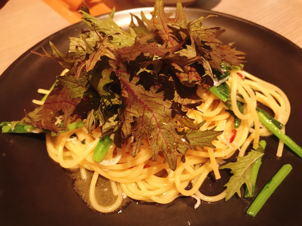 パスタは、しらすと辛子菜のペペロンチーノ。コレも味付けが絶妙。3人でシメにシェアするにもちょうど良い分量でした。