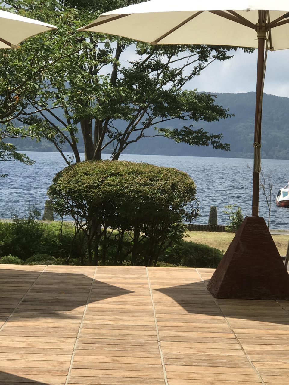 ランチタイムは11時からなので、少し早めにと思って10時半過ぎに到着したら、18台分ある駐車場は残り2台分! 急いで駐めて店へ向かうと、芦ノ湖に面したオープンテラス席はほぼ着席済みでした。ランチタイム前に30分間設定されている「モーニングタイム」に入店しドリンクなどを楽しみながらランチを待つというのが常連さんのスタイルのようです。ご注意を。