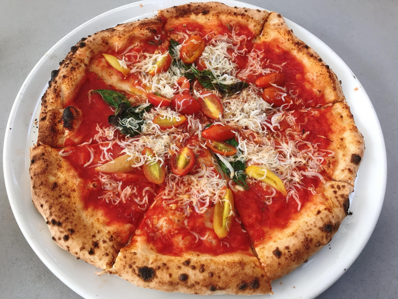 ピッツァはサクラマスも気にはなったのですがシラスとミニトマトなどをチョイス。大きい!ほんとに熱ッつい!!と大満足でした。