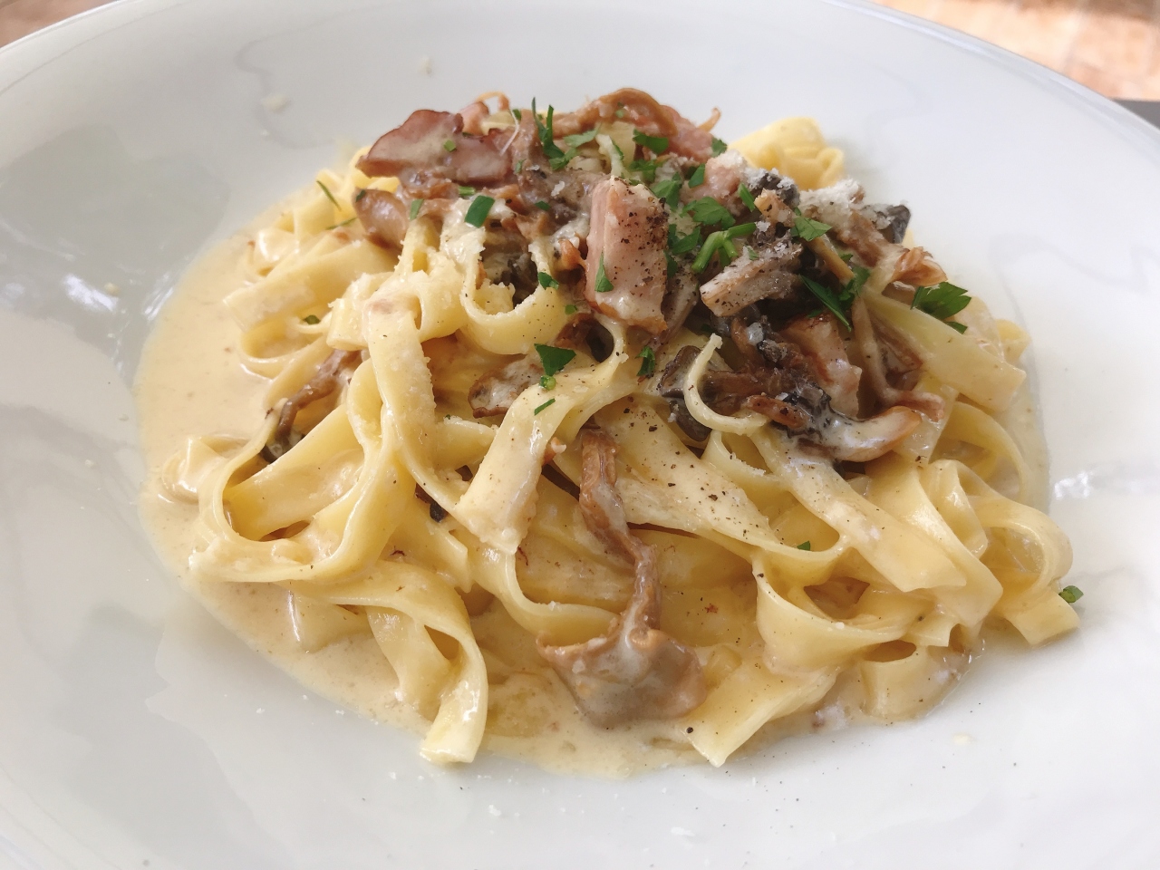 パスタはきのこのクリームソースのフィットチーネを注文。クドくないクリームソースにきのこのえも言われぬ味わいがクセになる一品でした。