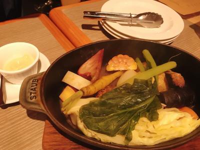続いては、看板メニューだという旬の野菜のエチュベ。バターと白ワインで風味を加えた旬の野菜が、スキレットのようなもので野菜の水分のみを使って蒸し焼きにされているシンプルな調理法なのですが、それぞれの野菜本来の味が十分に感じられながらも、驚くほど柔らかいのです。「五感で味わう逸品」というキャッチコピー通りに堪能できました。