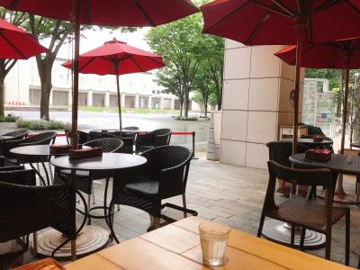 横浜みなとみらいのMARK IS1階にあります。営業開始は通常なら10時のようですが、今はMARK ISそのものが時短営業で、11時オープンでした。テラス席が3列20席分有るので、時間が早ければ休日でも案内してもらえます。あいにくの雨だったのですが、店寄りの2列なら濡れることもありません。私たちは向かい側に建つ横浜美術館を向く横並び席を選びました。
