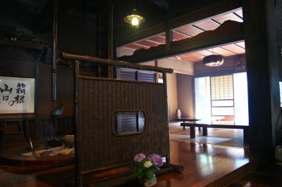 元箱根から箱根旧街道の石畳を小一時間下りましたが、誰ともすれ違うことなく到着しました。やはり観光客は減っています。隣接する駐車場もガラガラです。茶屋の入口にはもちろんニューノーマルとしての消毒液が。