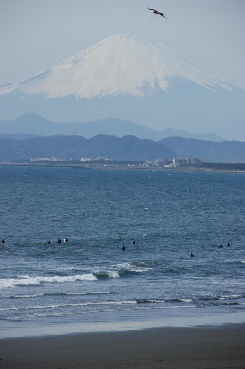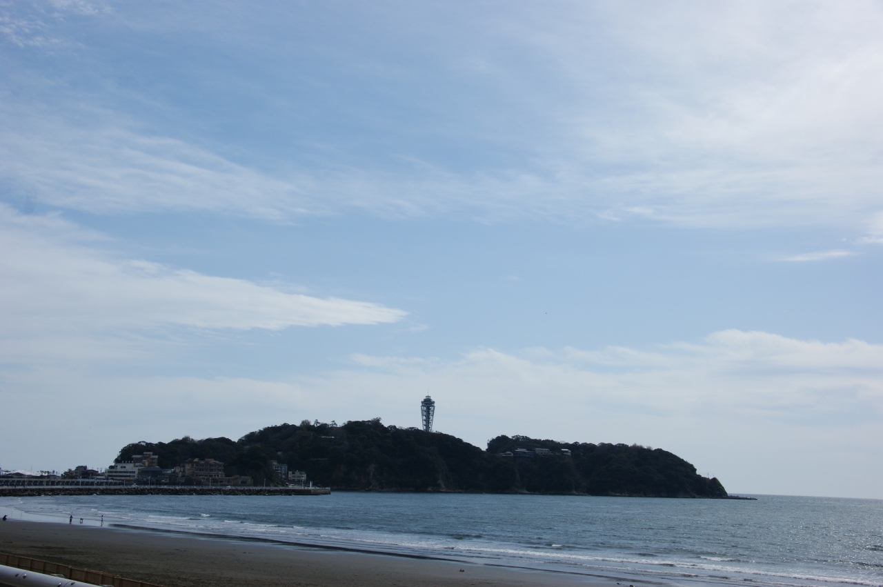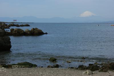 その後海の方へ歩いて行くと、声を上げる人も。絶景の一言です。奥には海に浮かんでいるような富士山。右手前の江ノ島や、左手の名島(菜島)に立つ鳥居も画になります。相模湾に浮かぶヨットやシーカヤックも彩りを添えてくれました。- 旅行時期
