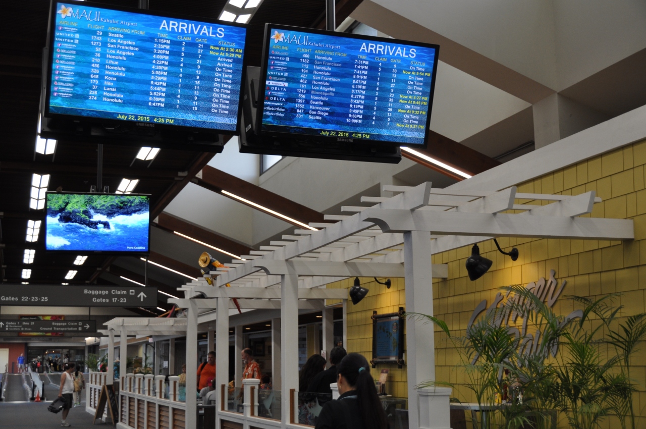 ホノルルで、日本では飛んでいないボーイング717型機に乗り継ぎ、マウイ島のカフルイ空港へ向かいました。ローカルな素朴感のあるハワイ島のコナ空港と全く異なり、巨大なターミナルであることに驚きました。聞くとアメリカ本土からのリゾート客が多いとのこと。納得です。