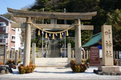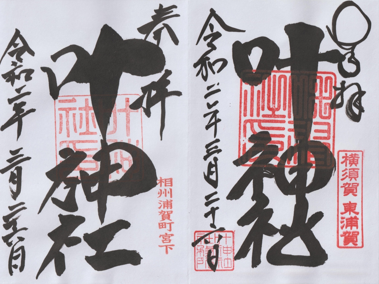 横浜横須賀道路の浦賀I.C.を下りて東浦賀方向へしばらく走るとあります。鳥居の脇と海側に数台駐められるスペースが用意されています。海の香が漂う鳥居前から進むと、少し階段を昇ります。御朱印帳と御朱印を求めたのですが、次に行く(西岸)叶神社と見開きにしたいというわがままを聞き入れてくださり、2ページめに御朱印を頂けました。表紙は咸臨丸の雄々しい姿です。