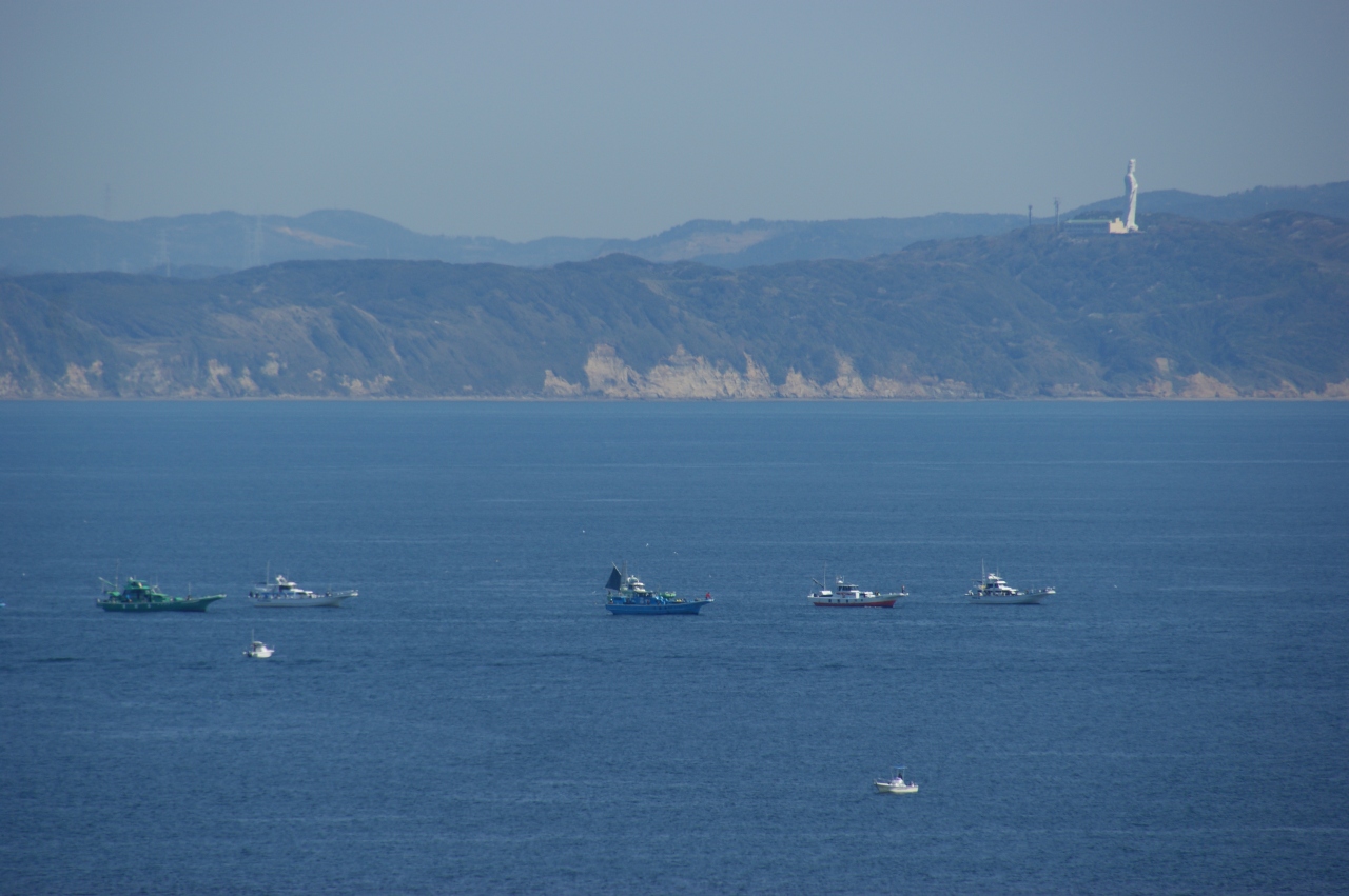 灯台そのものは臨時休業中でしたが、眼下に東京湾を往き交う大小の船が見られる絶景が広がります。ヨットなどの他、おがさわら丸や自衛艦も見ることが出来ました。また、対岸である房総半島に立つ東京湾観音も望めました。- 旅行時期