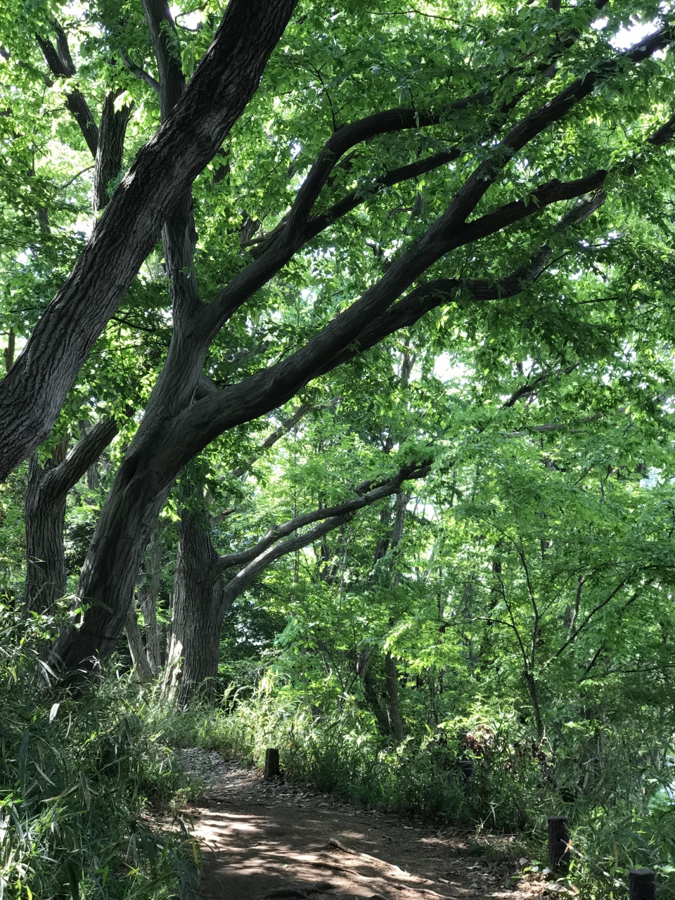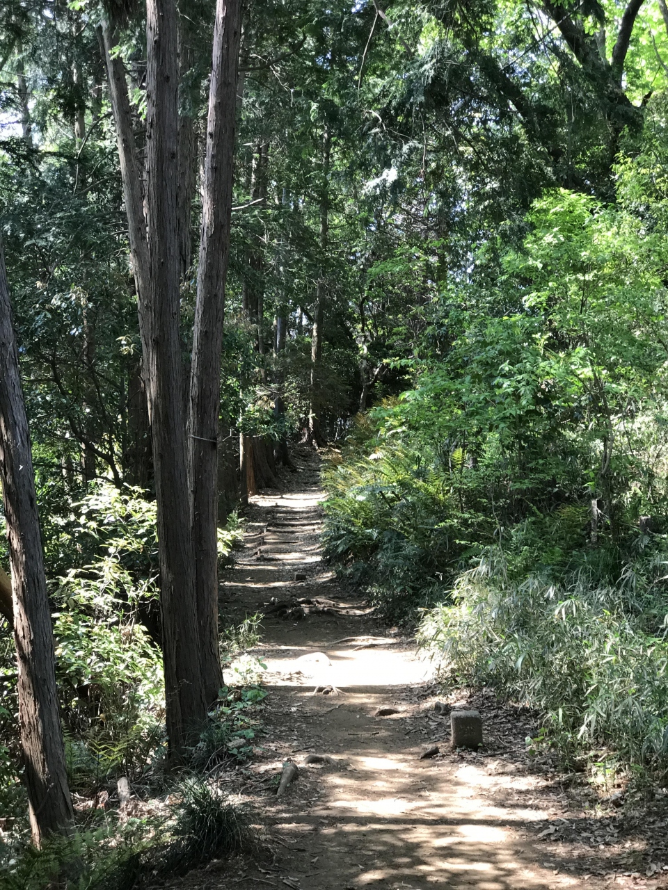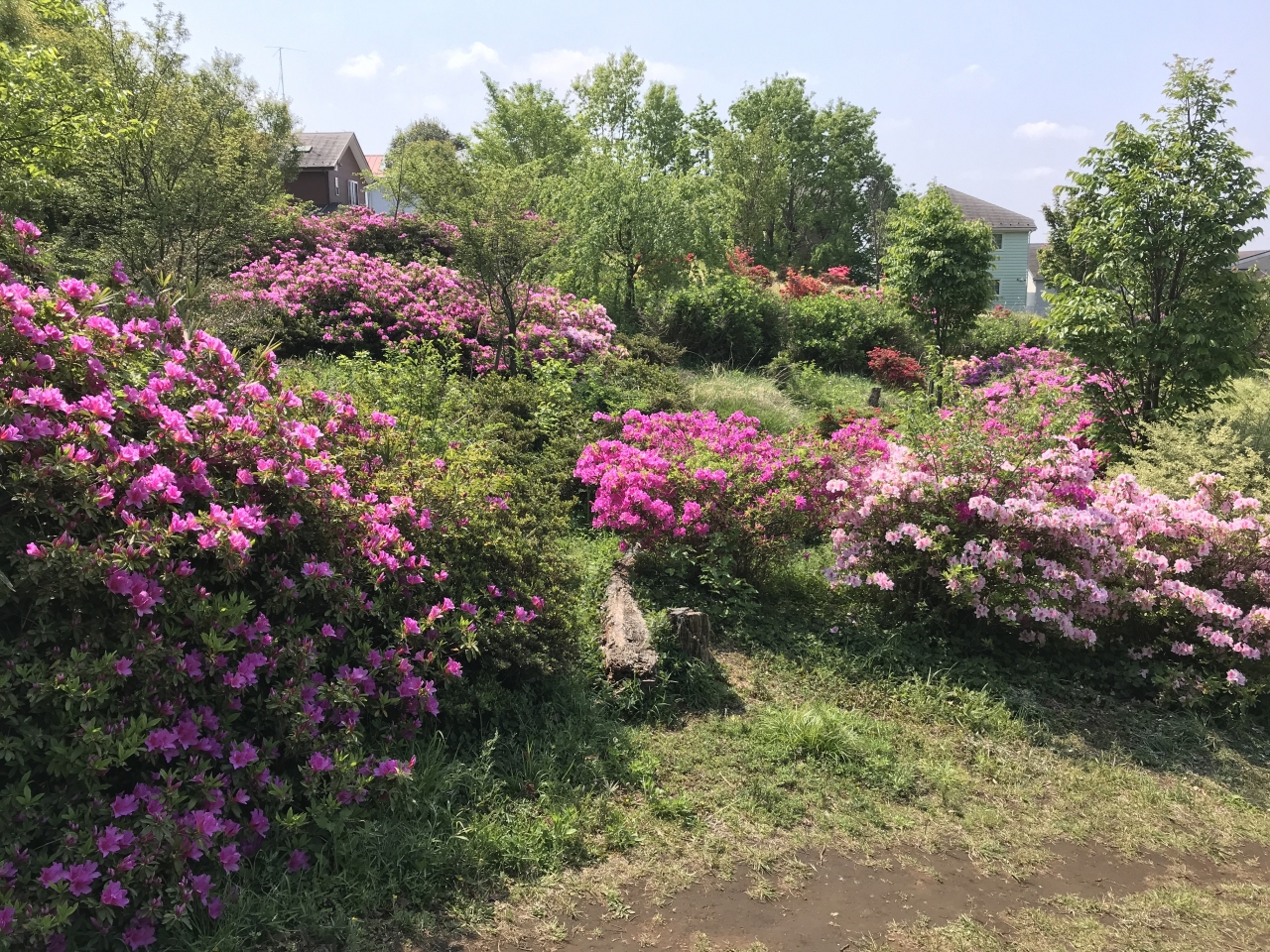 尾根道の最初は右側に住宅も建ち並び、そこへのエントランスとして自動車も入って来る舗装された道路ですが、その先が突き当りっぽくなり、左へ少し入るといよいよ「緑道」感が増して来ます。神奈川と東京の都県境、横浜と町田の市境とはとても思えない、爽やかなハイキングコースです。途中にはツツジ他さまざまな花々が咲き誇ってもいました。顔が赤い野鳥にも遭遇しましたが、種類は分かりませんでした。