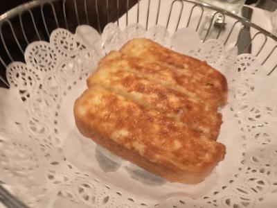 特製チーズブレッドは小さなものですが4個(2人分)。チーズと聞いて重めかなと思ったのですが、口に運んでみると実に軽く爽やか。さすがの味わいでした。