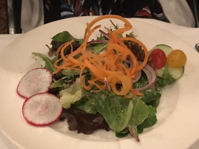 それに明石ダコ(淡路島直送)の特製アヒージョとGRATIAシーザーサラダを付けました。サラダは新鮮野菜に特製ベーコンとチーズ(グラナパダーノチーズ)をたっぷりのせたサラダで、量もたっぷり。アヒージョも熱々というわけにはいかなかったのですが、特製ガーリックバターソースでエスカルゴ風に仕上げてあり、タコは美味! スライスバゲットはタコをのせて、或いはソースに浸して美味しくいただけました。- 旅行時期