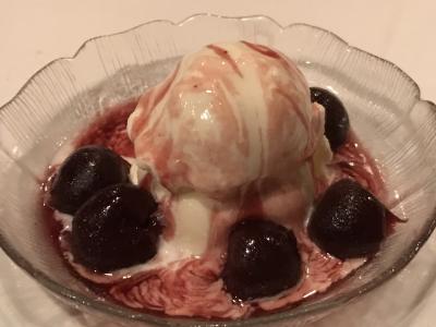 デザートは、普段ならホームメイド・チーズケーキに行くところですが、今日は特製フランベ(アイスクリーム)を選択。使用するフルーツも悩みましたがチェリージュビリーとしました。テーブルサイドで調理し丁寧に仕上げてくれたアイスはなんともゴージャスで、味わい深いものでした。ロイヤルコナコーヒーまたは紅茶がつきます。