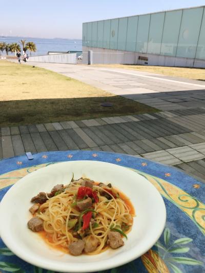サラダもたっぷりありましたし、ドリンクまで付いて1,400円・1,600円はリーズナブルです。何よりも、テラス席は全席が芝生の向こうに東京湾を眺められます。吹き渡る爽やかな風とともに開放感ある素敵なランチがいただけました。- 旅行時期