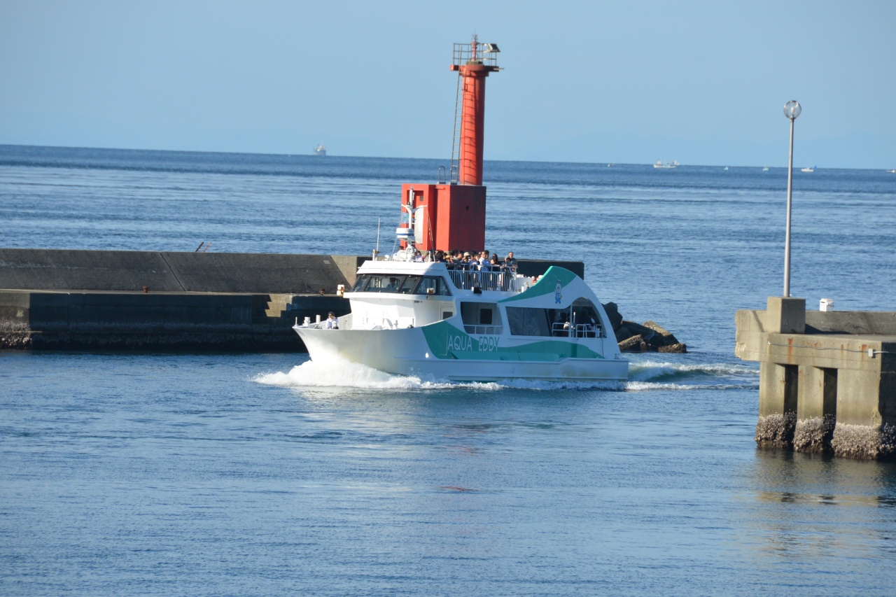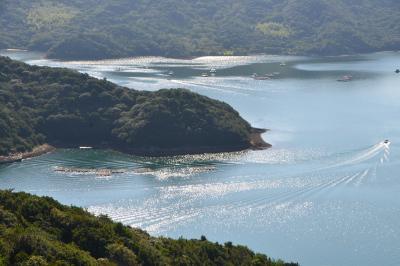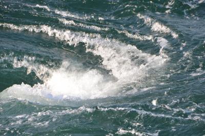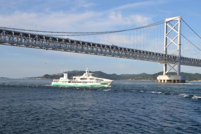 神戸淡路鳴門道の鳴門北ICで下りて予定より早く15:30頃に乗船場に到着したのですが、15:40の便は運航がなく、結局16:15の便に乗船しました。海面下に突き出した展望室から海中のうずの様子が間近で見られる小型の高速船です。序盤は遊園地的な照明が眩しい狭い展望室の指定座席にかたまって座らされるのですが、渦潮の真ん中に到着すると自由席となり、渦が巻く様子を海中のアングルから観察できます。その後はデッキに出て間近に渦潮を堪能できました。大鳴門橋とともに写真を撮ろうとすると、渦潮がよく判らなくなるというジレンマに悩みながら何回もシャッターを切りました。