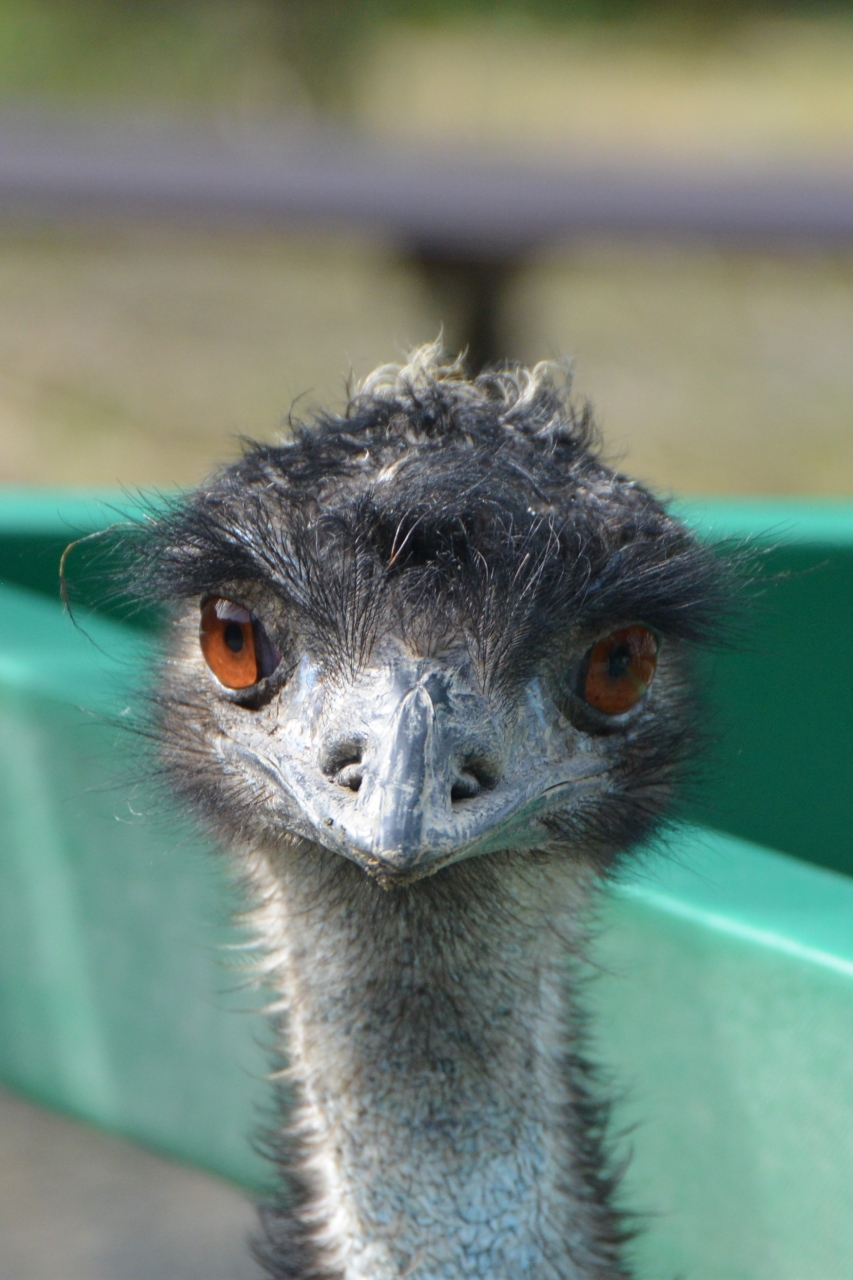 そしていよいよ屋外エリアへ。ハクチョウの池を右手に見ながら進むとエミュー牧場があります。要はエミューたちのいる柵の中へ人間が入るわけです。デカい、近い! おまけに眼が血走ってます(笑) 正直怖さを少し感じますが、貴重な体験が出来ますので、勇気を振り絞って短い時間でも是非中へ。