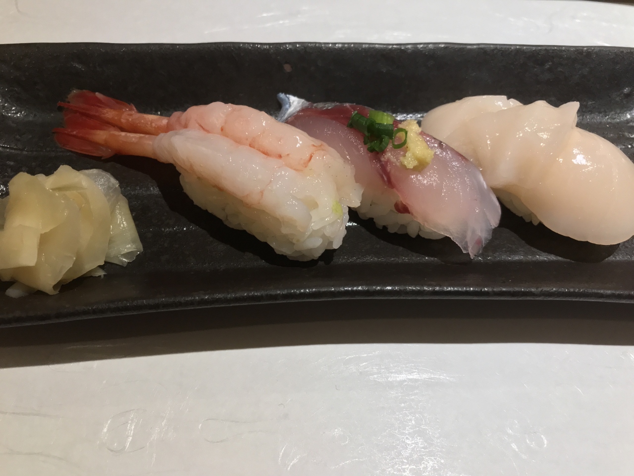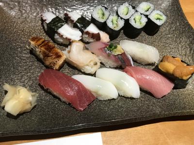 料理は握りをお好みで注文したのですが、素敵な皿で供されました。味の方はというと、あじと帆立貝は値段の割に美味でおすすめですが、あとは標準的でしょうか。風呂吹き大根は薄味で美味しかったのですが、中心部にややかたい所が残っていましたし、百合根と銀杏のかき揚げは、素材はともにホクホクで良い物なのですが、揚げ方がやや油っぽさが残っている印象でした。- 旅行時期