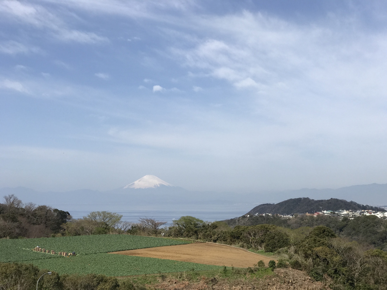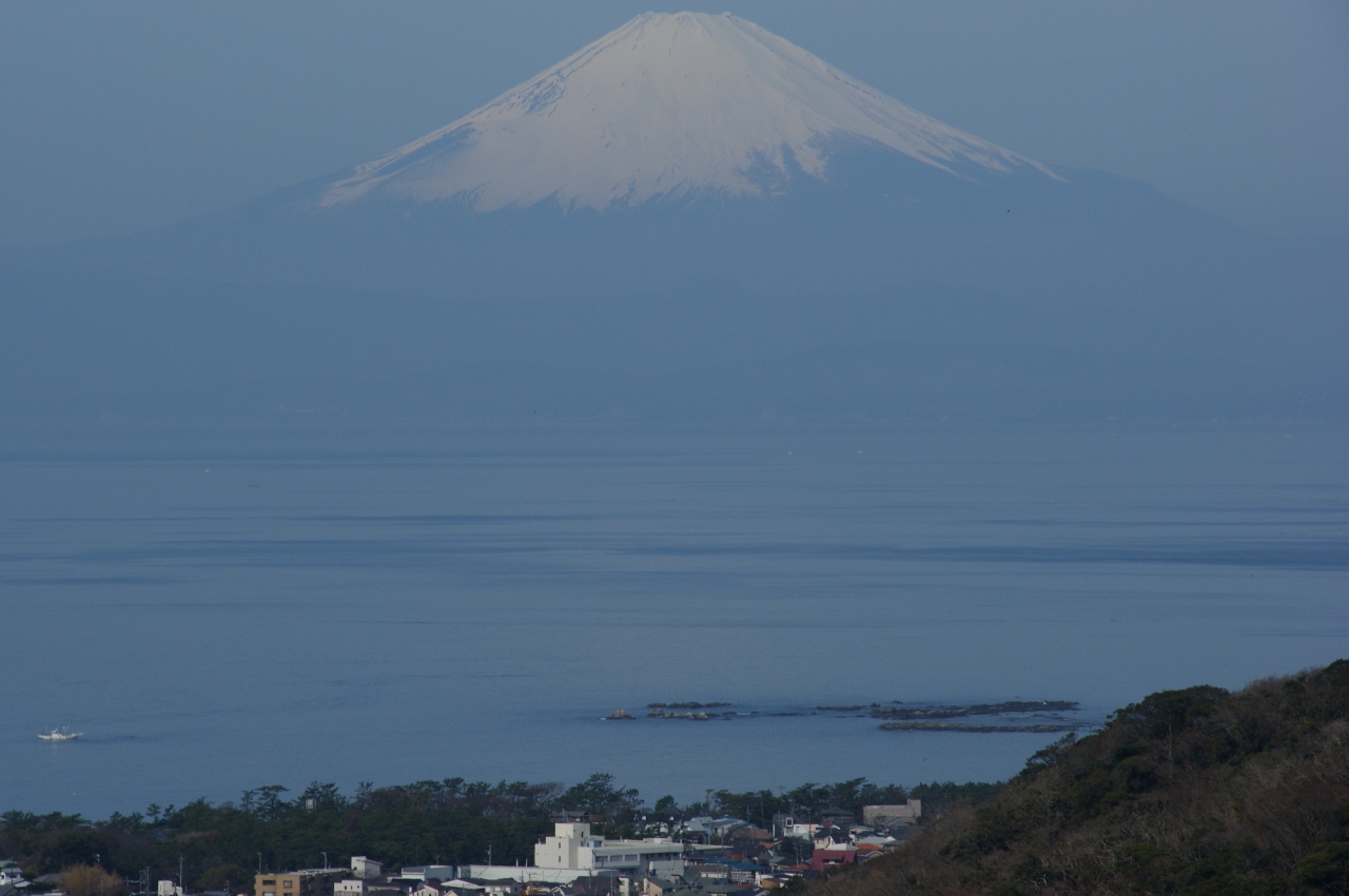 そこを左折してさらに少し上り「つつじが丘」バス停辺りからの富士山は、間違いなく絶景です。横断歩道を渡り石段を少し登っていくと、季節ならば桜とのコラボレーションも望めそうでした。