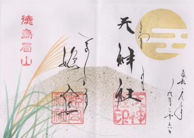 西側からのアクセスなら、徳島自動車道を藍住ICで下りて向かいます。言わずと知れた四国八十八ヶ所巡りの第1番札所です。まっ先に眼に飛び込んで来るのが鳥居なのですが、以前ブラタモリで視た時に神仏習合が何とかと言っていた気がします。が、忘れてしまいました。同行二人と書かれたすげ笠をかぶった白装束のお遍路さんにたくさん出会いましたが、あちらこちらに「四國第一番」と記されているのも身が引き締まる思いなのだろうと感じました。こちらでは御朱印とは呼ばず納経所で納経帳にいただくのが基本ですが、御朱印帳でも受けてくださいました。日付が記されていないのには何か理由があるのかも知れません。流石に立派な寺院でした。