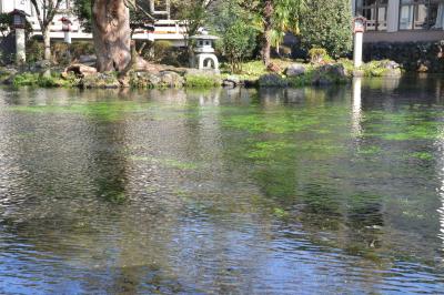 拝殿の右に進み東脇門を抜けると、有名な湧玉池があります。富士山の雪解け水が湧き出ているとのことで、緑が名状し難いほどの美しさでした。- 旅行時期